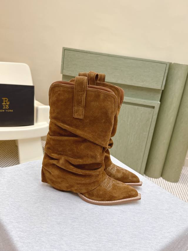 High-quality import | R13 2025 Autumn/Winter New Arrival: Stylish Slouch Boots. A brand with punk rock as its core aesthetic, these slouch boots reach new heights of beauty, making legs appear slimmer while maintaining a relaxed and cool vibe. High-quality, silky-finish cowhide leather, cowhide lining, Italian imported genuine leather outsole. Sizes: 35-39# 40# Made to order, no returns or exchanges.