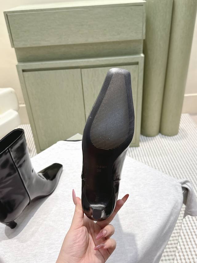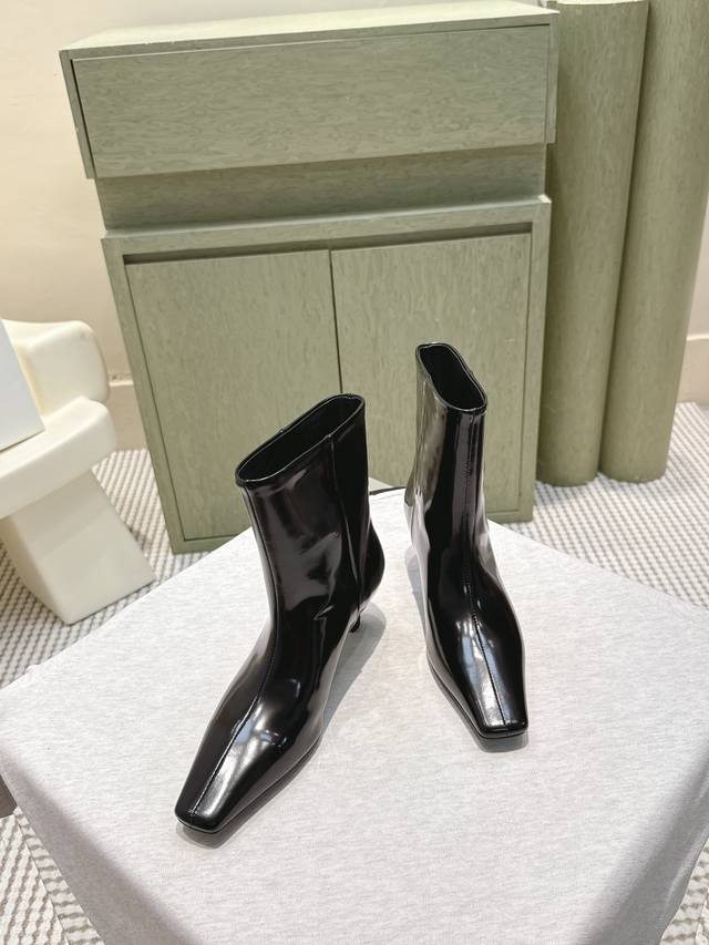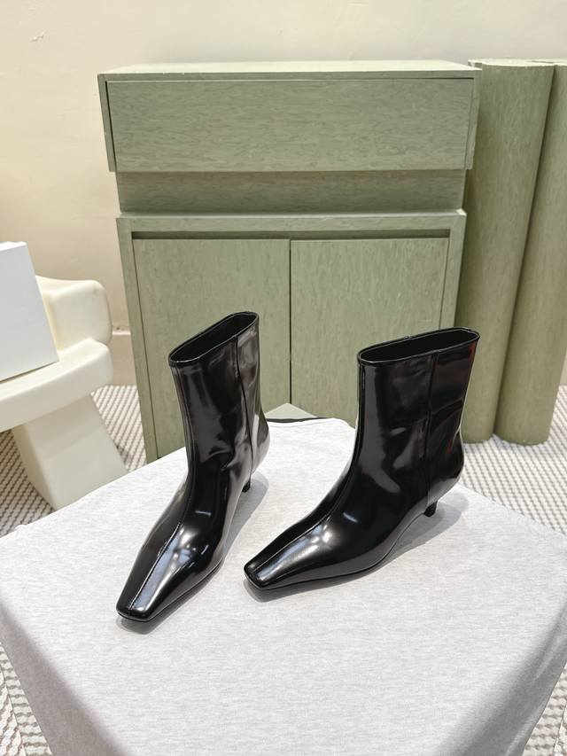 High-quality Khaite 2025 Autumn/Winter new square-toe kitten heel boots, stylish short boots. The square toe and kitten heel are very stylish. The slightly slanted opening adds a unique touch. They're beautiful and easy to style. I love them! Upper: Split leather. Lining: Sheepskin. Heel height: 3cm. Outsole: Original leather sole. Size: 35-40. Size 40 is custom-made and non-refundable.