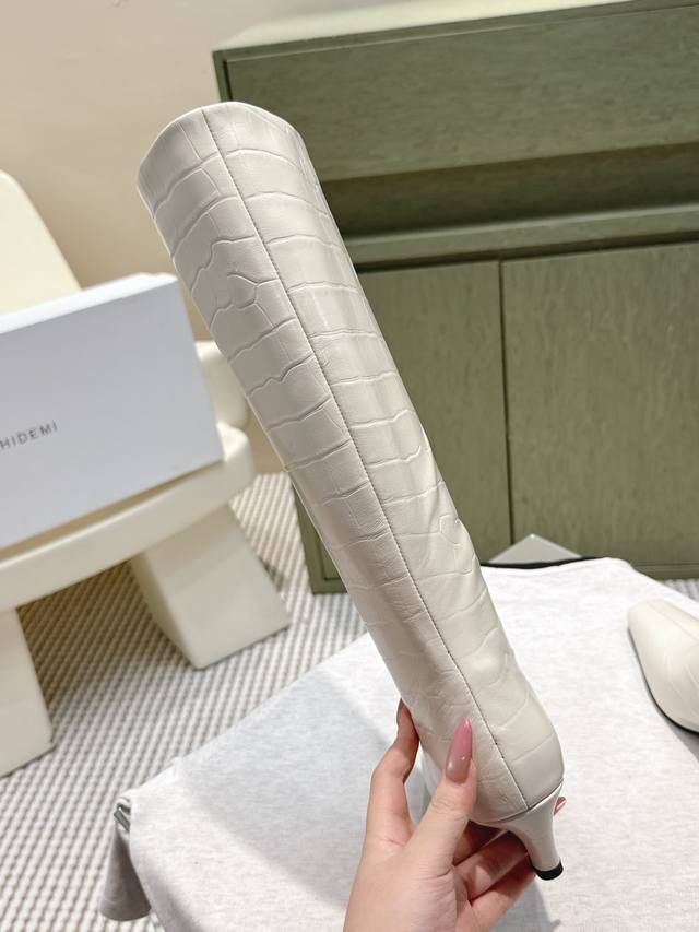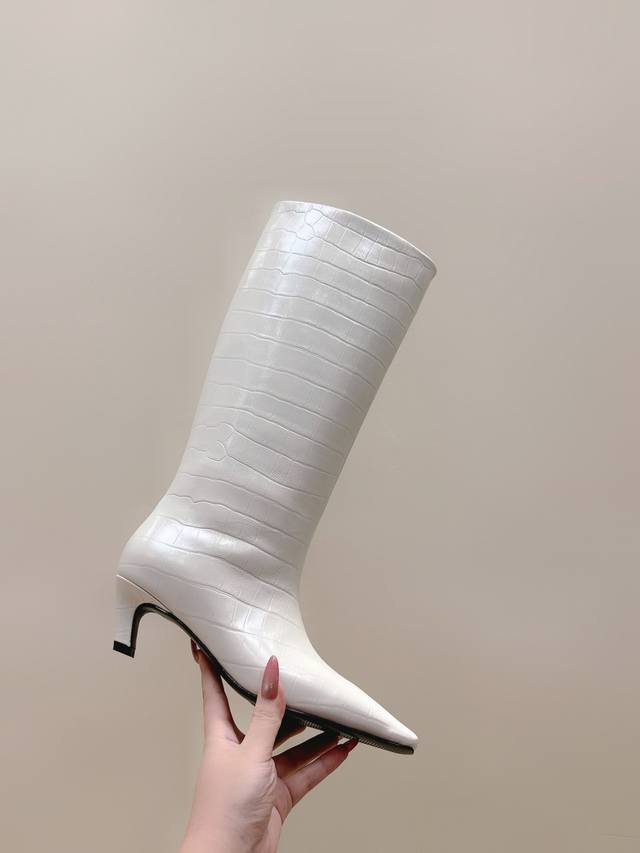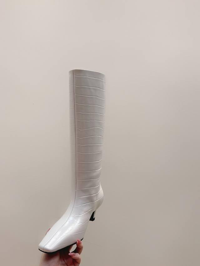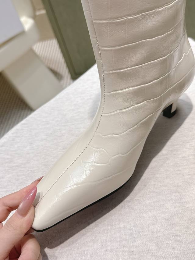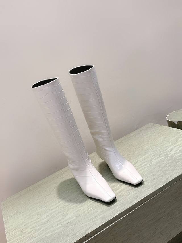 High-quality Khaite 2025 Autumn/Winter Square Toe Kitten Heel Boots, fashionable high boots. The square toe and kitten heel are very stylish. The slightly slanted opening adds a unique touch. They're beautiful and easy to style. Love them! Upper: Original cowhide leather; Lining: Sheepskin; Heel height: 3cm; Outsole: Original cowhide sole; Size: 35-40. Size 40 is custom-made and non-refundable.