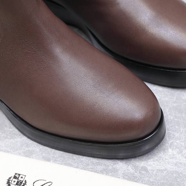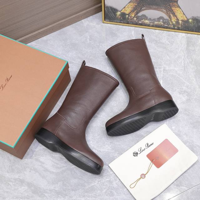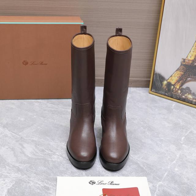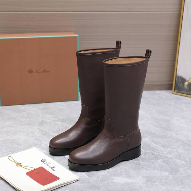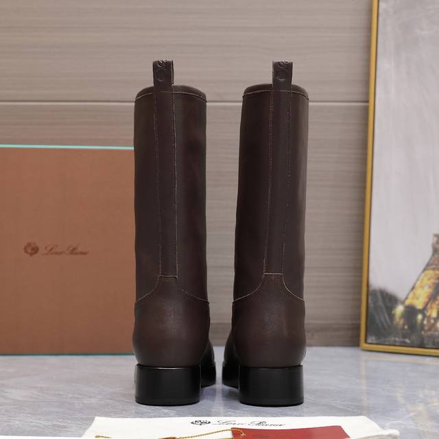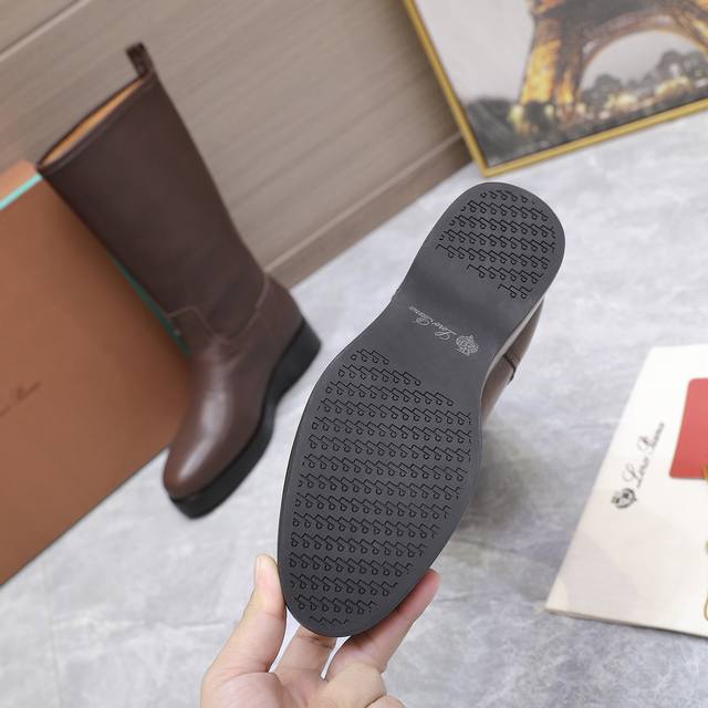 High-quality Loro Piana Kilda Long Boots (Autumn/Winter New Arrival) - These iconic long boots are crafted from imported calfskin, giving them a rustic yet unique vintage aesthetic. The casual yet sophisticated style is suitable for both urban looks and relaxed weekend outfits. Features include a Loro Piana non-slip rubber sole with leather trim and genuine leather welt. Other features include a cowhide lining, embossed logo on the heel, and a one-piece tonal rubber outsole with non-slip LP details. Upper: Original custom calfskin; Insole: Cowhide; Outsole: Original molded rubber outsole; Sizes: 35-39, 40.41 (Made to order, no returns or exchanges); Price: 590