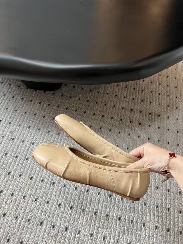 High-quality Maison Margiela Tabi pleated ballet flats (retailer grade) - These are so popular! Maintaining the same high-quality production! You can always trust our Maison Margiela Tabi; the leather is incredibly soft!! Perfect for walking around in. The new low-cut ballet flats make your feet look slimmer than the old ones. Very versatile, perfectly matching pants and skirts, and great for everyday commuting. Material: Imported lambskin. Lining: Lambskin. Outsole: Italian imported genuine leather. Sizes: 35-41. Sizes 40 and 41 are custom-made and non-refundable.