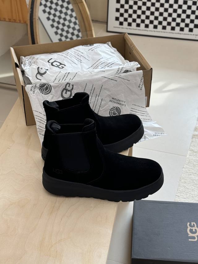 High-quality men's Ugg 1152050 Burley Chelsea boots. Simple and retro style, casual and versatile. Comfortable and slip-resistant outsole. High-gloss suede material, stylish and durable. A must-have for keeping your feet warm this winter! Sizes: 39, 44.