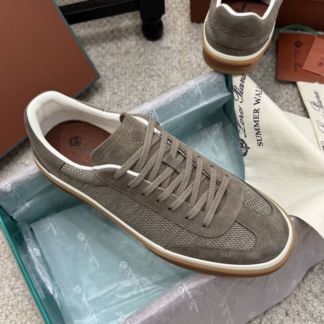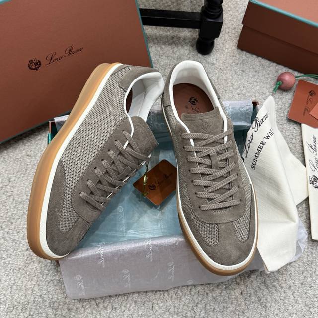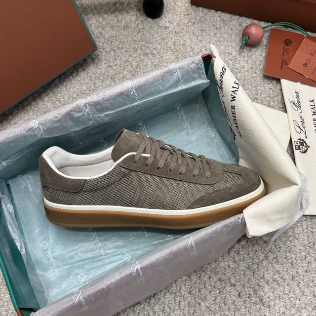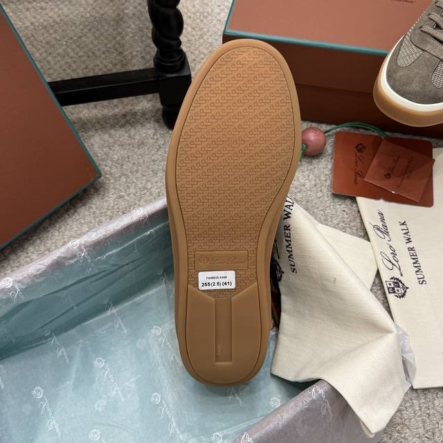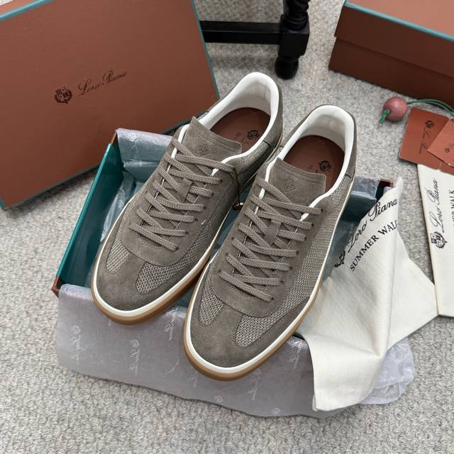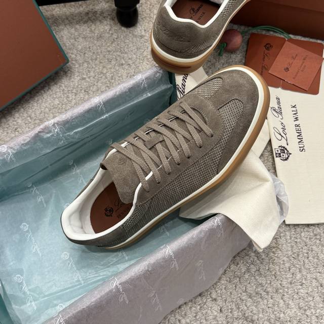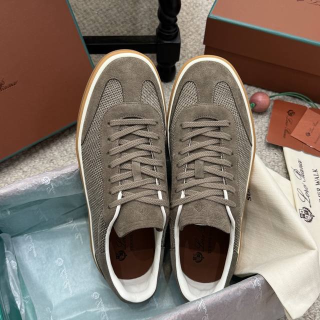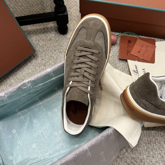 High-quality men's/women's 10-inch Loro Piana Tennis Walk series LP German training shoes, casual sports shoes, sneakers. Original purchase and developed, suitable for year-round wear. The bound-edge sole creates a relaxed and charming color combination, harmoniously blending functionality with a low-key, individualistic style. An ideal footwear choice for urban attire. Features include a soft calfskin tongue with a Kummel-colored inlay at the heel, embossed LP logo, cotton laces, split suede sole, rubber lining, and calfskin. Comes with exquisite boutique packaging. Material: Original custom top-grain suede. Lining: Sheepskin lining. Outsole: Original molded anti-slip rubber material. Sole thickness: 3cm. Size: 35-46, 45-46 custom-made.