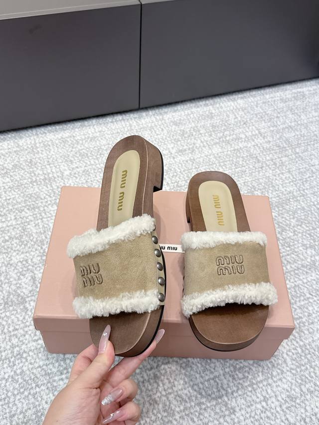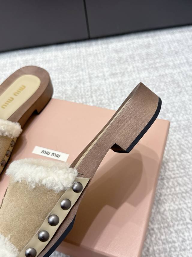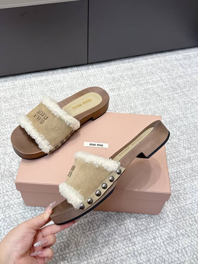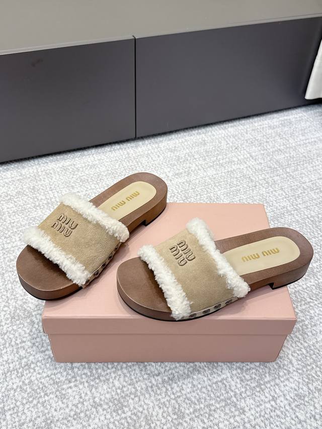 High-quality Miu Miu 25Ss Fall/Winter new wool slippers. Featuring a unique dist