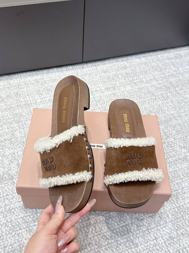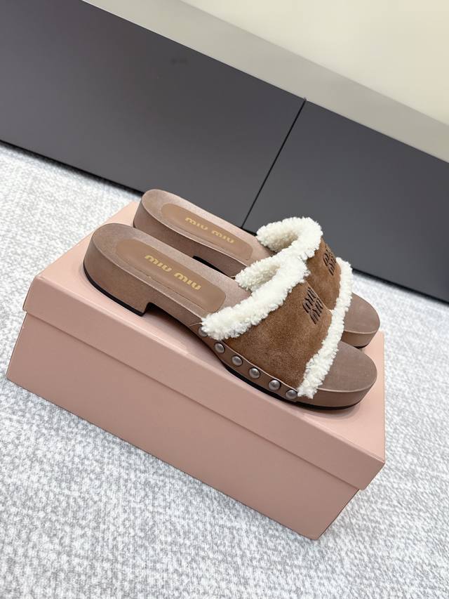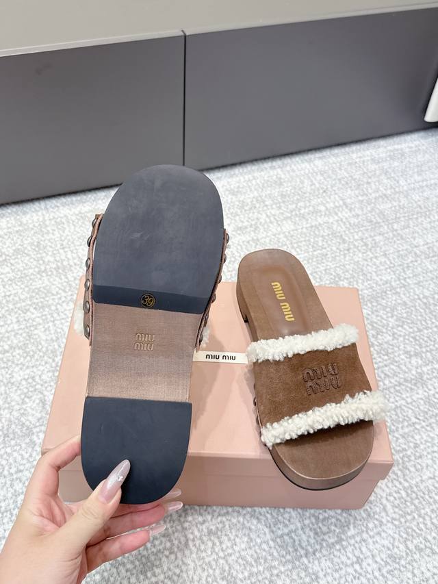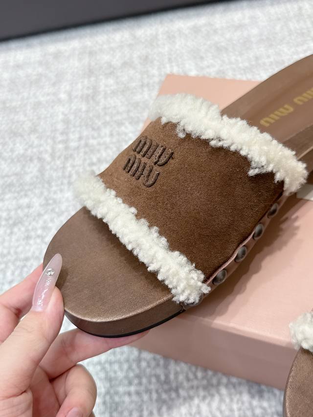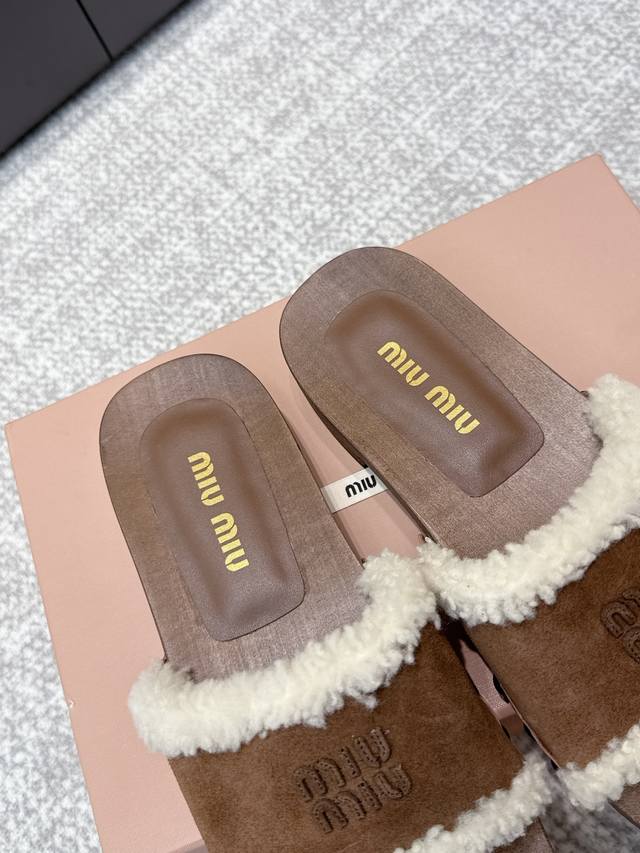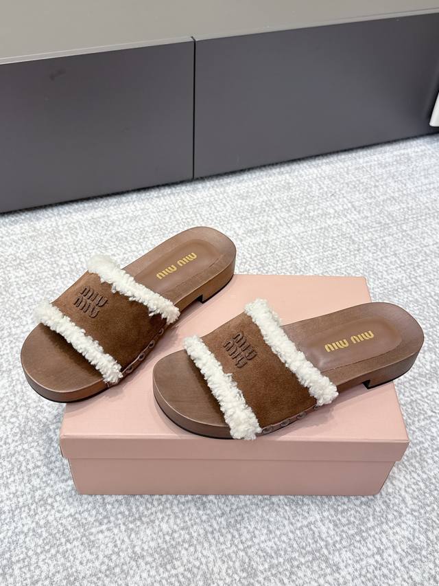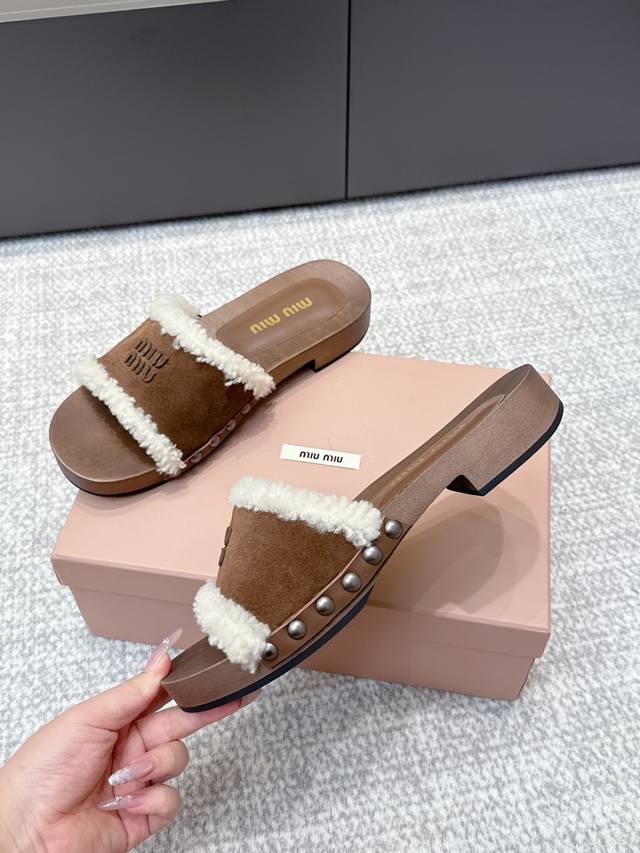High-quality Miu Miu 25Ss Fall/Winter new wool slippers. Featuring a unique dist