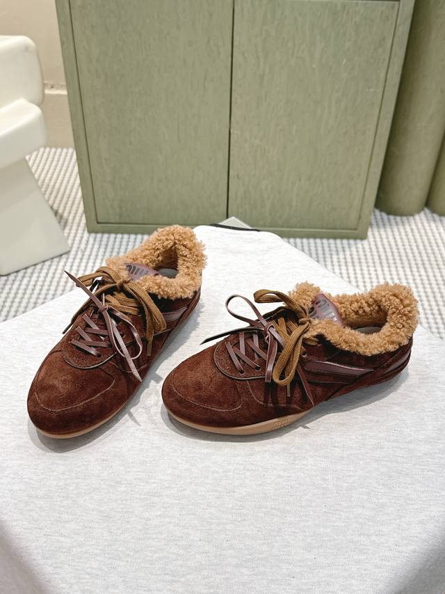 High-quality Miu Miu latest American retro style casual German training shoes~ A must-have for stylish and popular sneakers~ Distressed and fashionable, simple and sophisticated, easy to match, very comfortable to wear, a must-have of the year, the latest runway style athletic dad shoes, a favorite of domestic and international bloggers, a must-have on Xiaohongshu, retro and fashionable, looks amazing on the feet. Simple athletic sneaker design, highly recognizable tongue, creating a relaxed and sweet casual style~~ Full of presence on the feet, easy to match, mainstream double shoelace design, focusing on fashion. Upper: Cowhide nubuck leather Lining: Wool Heel: Flat Outsole: Original mold Size: 35-40 Size 40 Custom-made, no returns or exchanges .