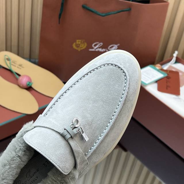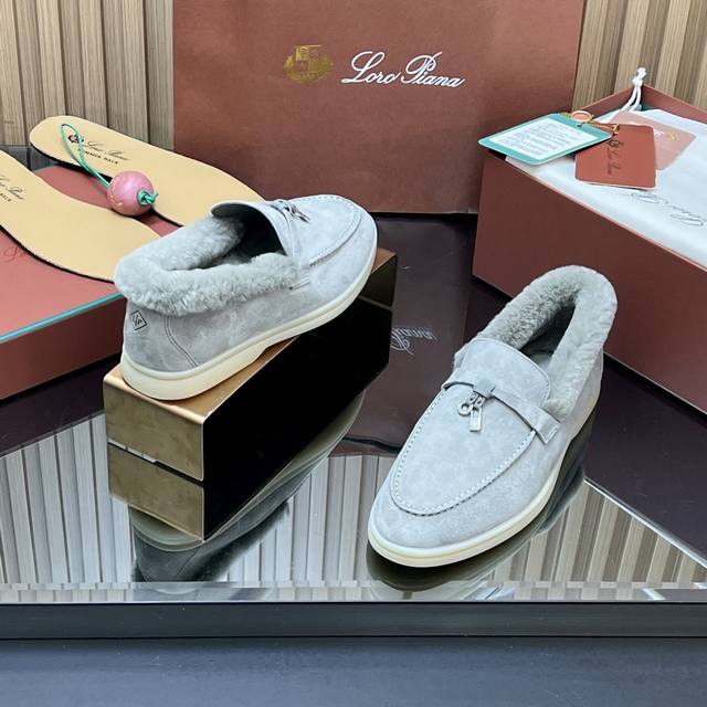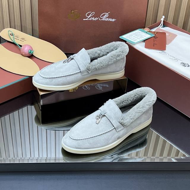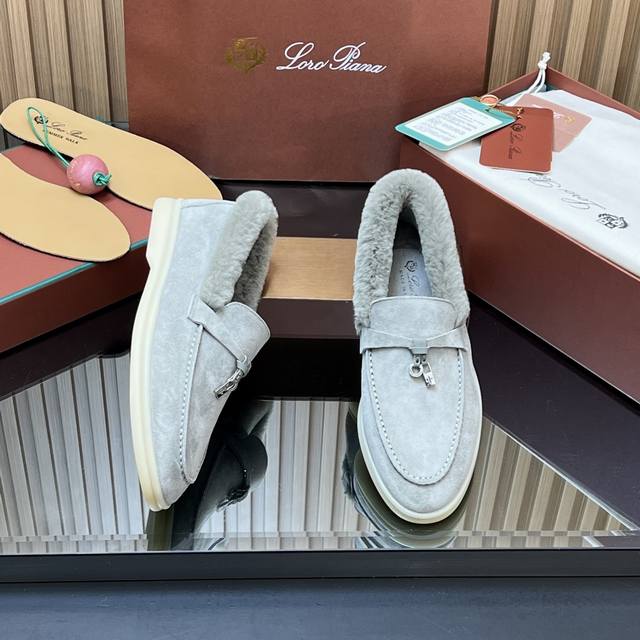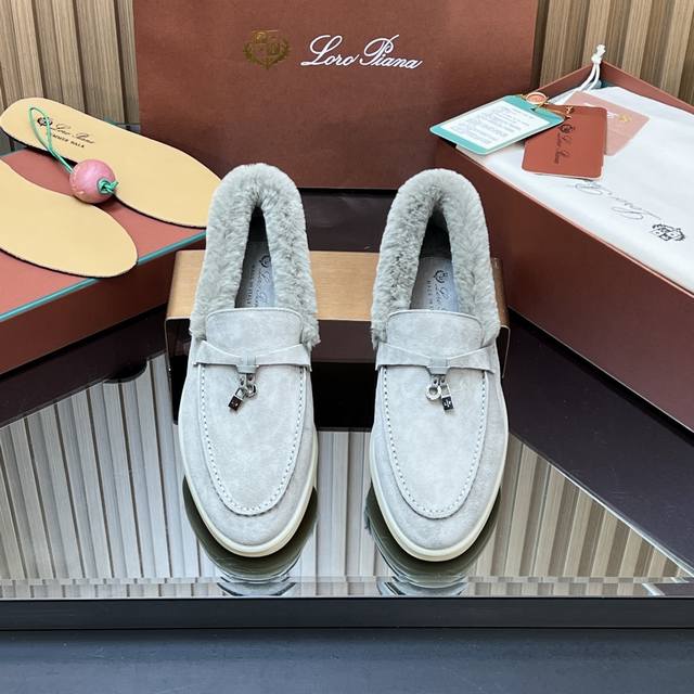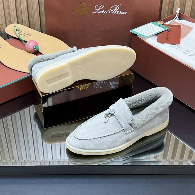 High-quality product with complete packaging (including shipping box) DDD Loro Piana Autumn/Winter Newest Loafers, Fur Slippers, Beaver Fur Series DDD Factory Direct from Dongguan DDD Loro Piana, an Italian high-end brand, is a top-tier luxury brand. Originating in Italy, it pursues quality and craftsmanship, blending innovative technology with traditional Italian style. This brand has always been low-key, but it's considered a top-tier brand in the luxury goods industry. DDD Loro Piana doesn't have many stores in mainland China, but the quality is exceptional. Impeccable quality and luxurious materials are the pride of the Loro Piana brand, and these suede slippers perfectly combine both, leaving a lasting impression. After buying their shoes, you won't want to wear many other brands anymore; this is the feedback from those who have worn these shoes. They won't tire your feet or cause blisters even after wearing them all day. This is due to their meticulous attention to material quality, resulting in such a wonderful feeling. DDD, a top-tier Italian luxury brand and supplier to the British Royal Family. Material: Original custom-made high-gloss, soft, and textured suede. Lining : Beaver fur trimmed with cowhide lining . Outsole: Exclusive 1:1 custom-made rubber outsole. Midsole: Italian genuine leather midsole with stamped size. Sizes: 35-42 (Women's 40, 41, 42). Custom orders are non-refundable. Packaging: Brand new 1:1 original packaging, includes a carrying bag and airplane box. Bonus: One extra pair of cowhide insoles.