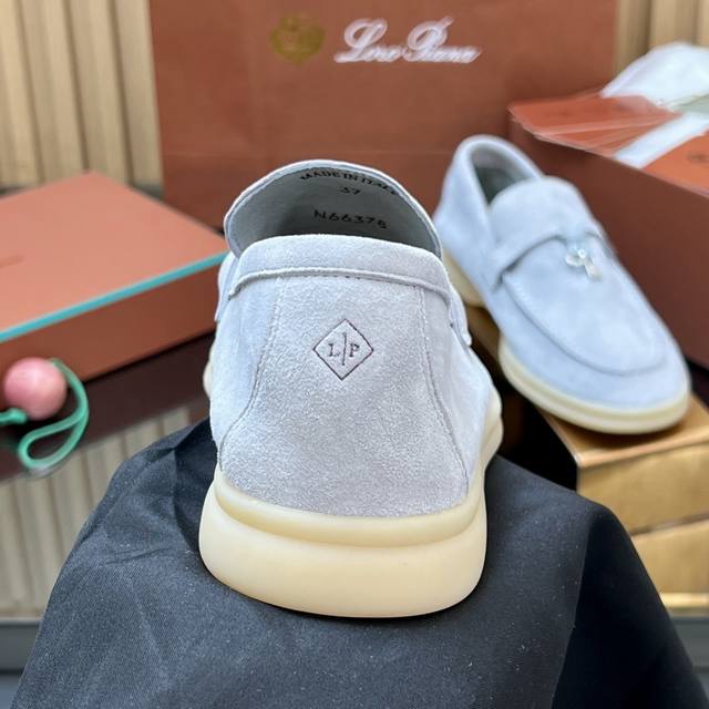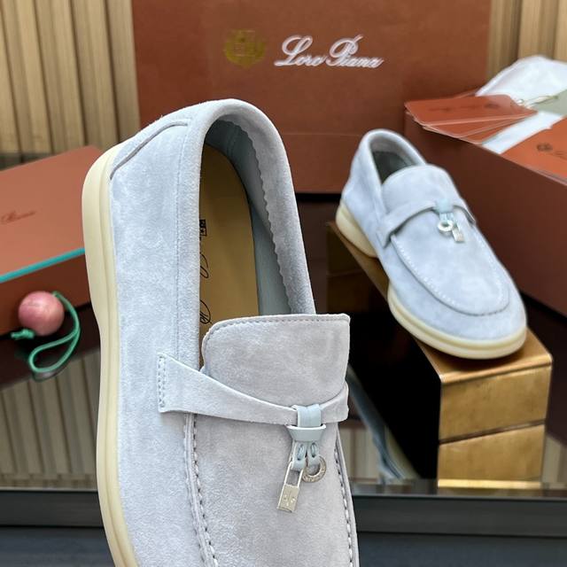 High-quality product with shipping box DDD Loro Piana Early Spring Newest Loafers Pendant Classic Series DDD Factory Direct from Dongguan DDD Loro Piana, an Italian high-end brand, is a top-tier luxury brand. Originating in cashmere, it pursues quality and craftsmanship, blending innovative technology with traditional Italian style. This brand has always been low-key, but it's considered a top-tier brand in the luxury goods industry. DDD Loro Piana has only a few stores in mainland China, but the quality is exceptional. Impeccable quality and luxurious materials are the pride of the Loro Piana brand, and this suede shoe perfectly combines both, leaving a lasting impression. After buying their shoes, you won't want to wear many other brands anymore; this is the evaluation of those who have worn these shoes. They won't tire your feet or cause blisters even after wearing them all day. This is due to their meticulous attention to material quality, resulting in such a wonderful feeling. DDD, a top-tier Italian luxury brand and supplier to the British Royal Family. Material: Original custom-made high-gloss, soft, and textured suede. Lining and Insole: Sheepskin lining; cowhide insole. Outsole: Exclusive 1:1 custom-made rubber outsole. Midsole: Italian genuine leather midsole with stamped size. Sizes: 35-42 (Women's 40, 41, 42). Custom orders are non-refundable. Packaging: Brand new 1:1 original packaging, includes a carrying bag and shipping box.