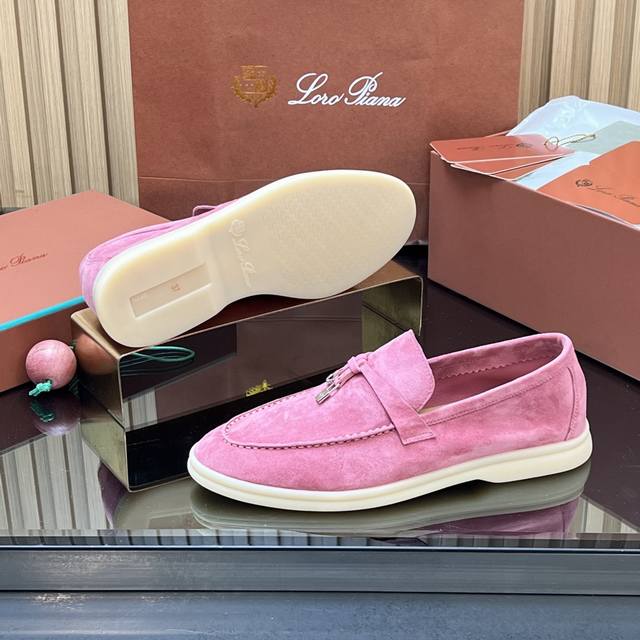 High-quality product with shipping box DDD Loro Piana Early Spring Newest Loafers Pendant Classic Series DDD Factory Direct from Dongguan DDD Loro Piana, an Italian high-end brand, is a top-tier luxury brand. Originating in cashmere, it pursues quality and craftsmanship, blending innovative technology with traditional Italian style. This brand has always been low-key, but it's considered a top-tier brand in the luxury goods industry. DDD Loro Piana has only a few stores in mainland China, but the quality is exceptional. Impeccable quality and luxurious materials are the pride of the Loro Piana brand, and this suede shoe perfectly combines both, leaving a lasting impression. After buying their shoes, you won't want to wear many other brands anymore; this is the evaluation of those who have worn these shoes. They won't tire your feet or cause blisters even after wearing them all day. This is due to their meticulous attention to material quality, resulting in such a wonderful feeling. DDD, a top-tier Italian luxury brand and supplier to the British Royal Family. Material: Original custom-made high-gloss, soft, and textured suede. Lining and insole: Sheepskin lining; cowhide insole. Outsole: Exclusive 1:1 custom-made rubber outsole. Midsole: Italian genuine leather. Sizes: 35-42 (Women's 40, 41, 42 - custom orders, no returns or exchanges). Packaging: Brand new 1:1 original packaging, includes a carrying bag and shipping box.