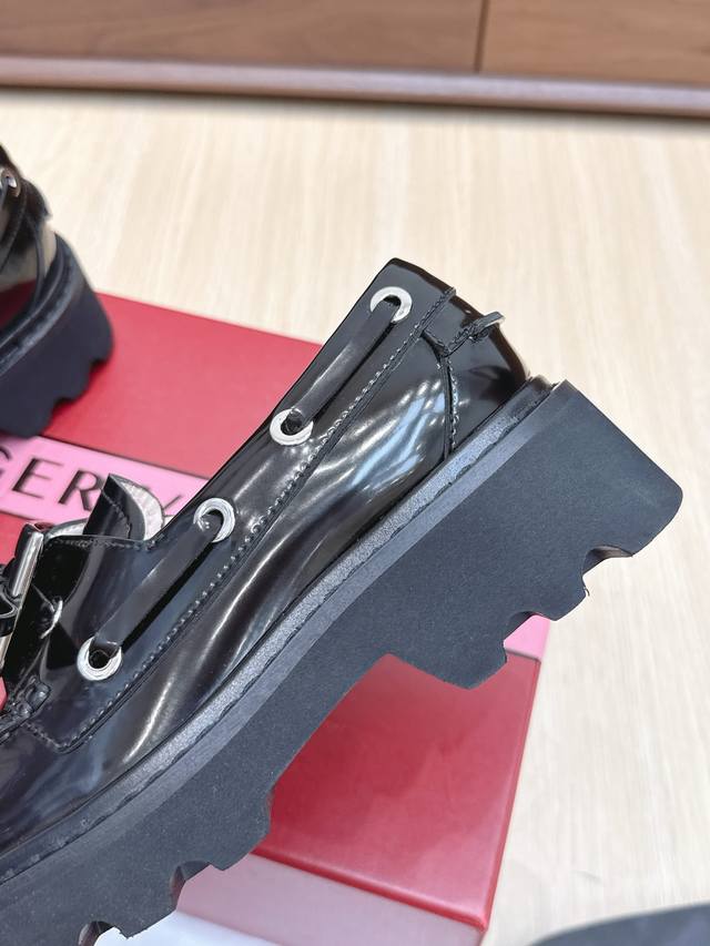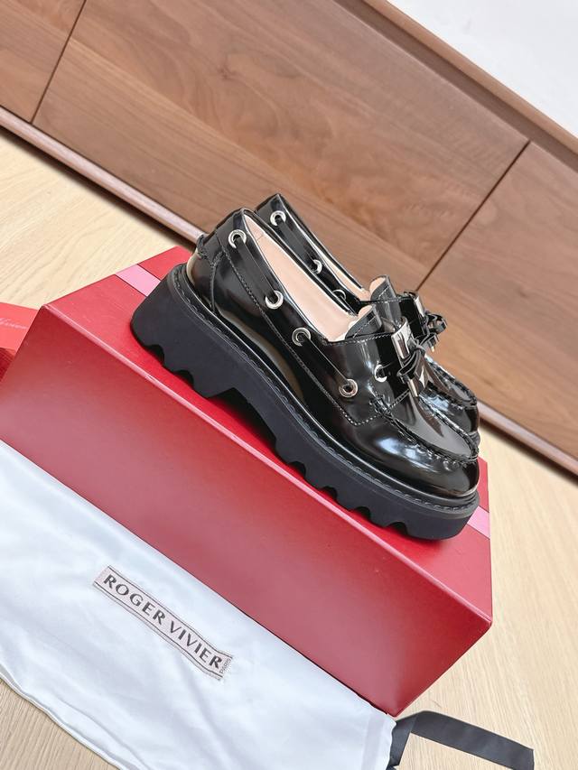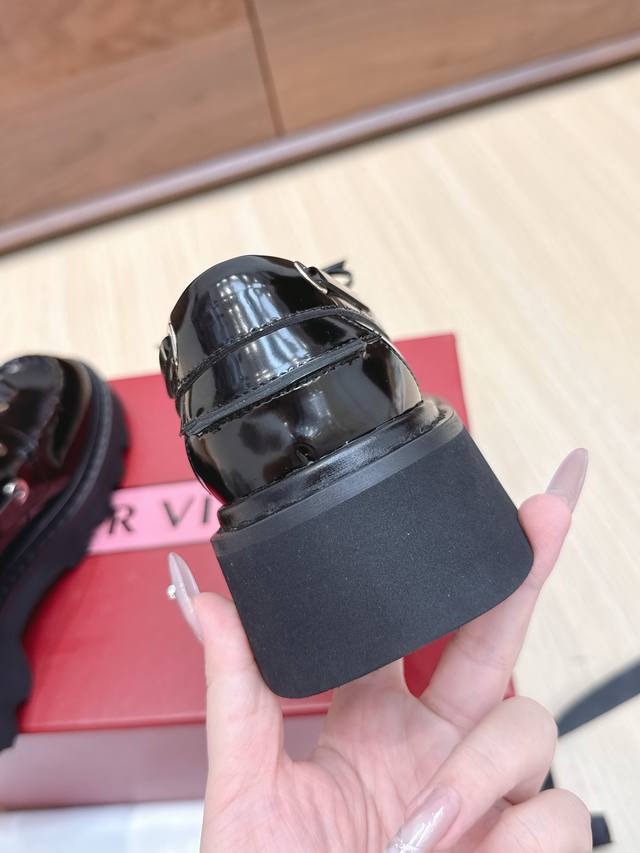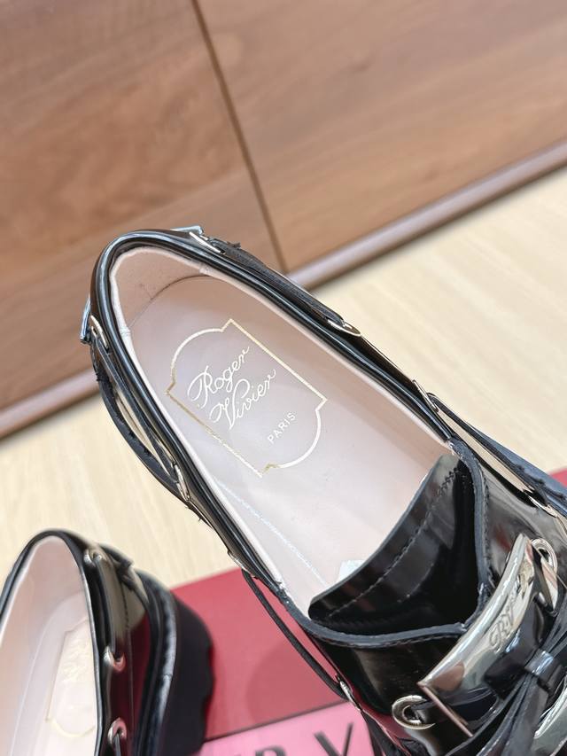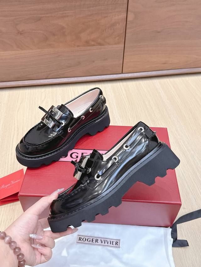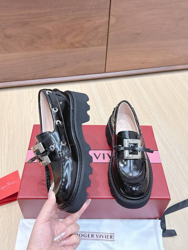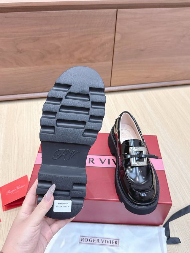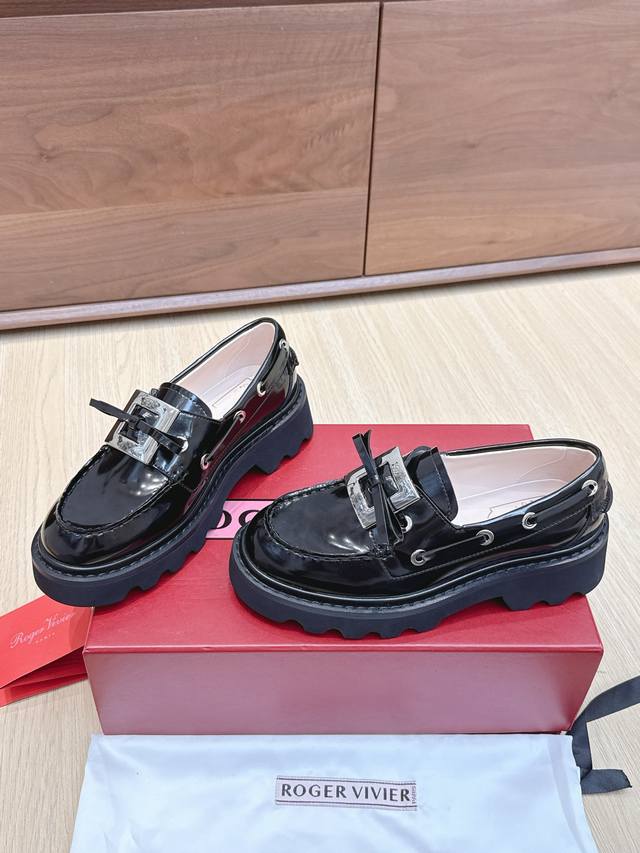 | RV New Loafers: A retro-modern design inspired by Roger Vivier's classic collection. The classic serrated sole has been reinterpreted, exuding a fashionable and modern feel. These leather boat shoes showcase an urban style with a non-slip thick sole and iconic buckle details, easily adding a touch of personality to any look. The dark rhinestone buckle is so cute! Understated yet versatile, everyone needs one! The 4.5cm thick sole is perfect for pairing with skirts and pants, providing height without being tiring. Size: 35-39. Size 40 is custom-made and non-refundable.
