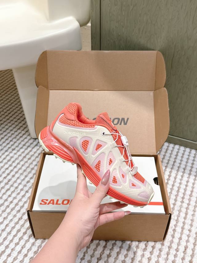 High-quality Salomon X Ama Lou 25Ss new trail running shoes, athletic shoes, tennis shoes. Designed for long-distance trail runners seeking superior comfort, the upper and toe feature a very thick white bonded design. The upper is primarily knitted with an additional layer of mesh on the sides, enhancing overall strength without compromising breathability.