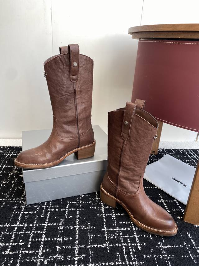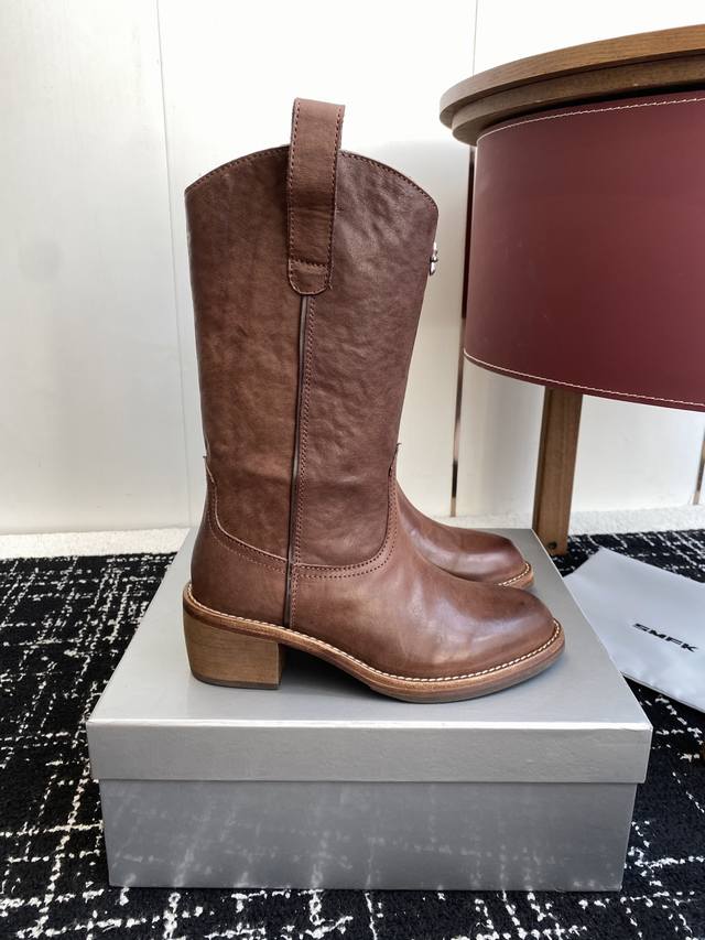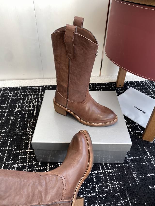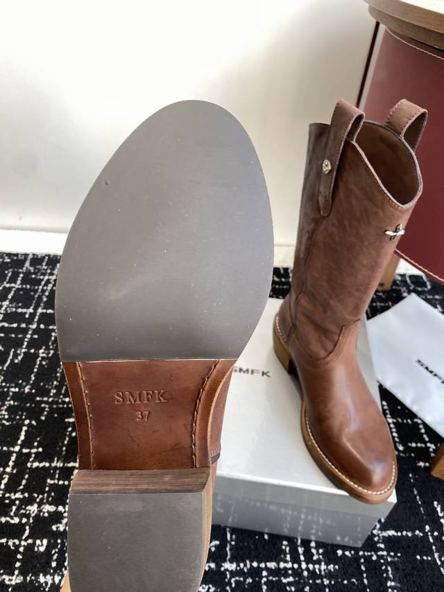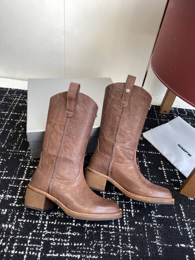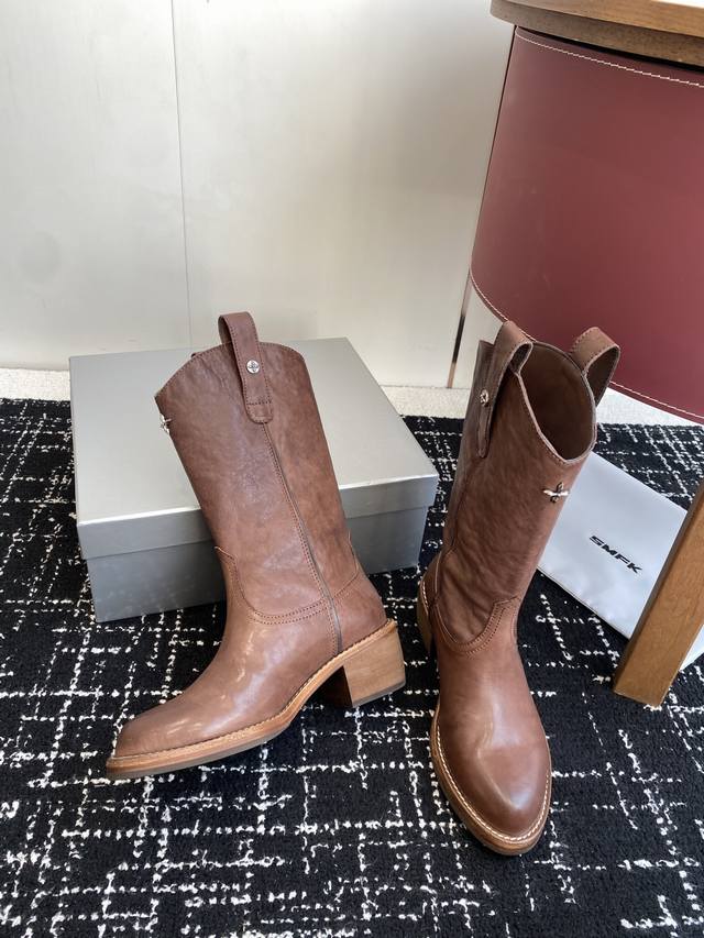 Smfk cross-stitch new cowboy boots, a touch of yellow in autumn, actually very stylish. These upgraded