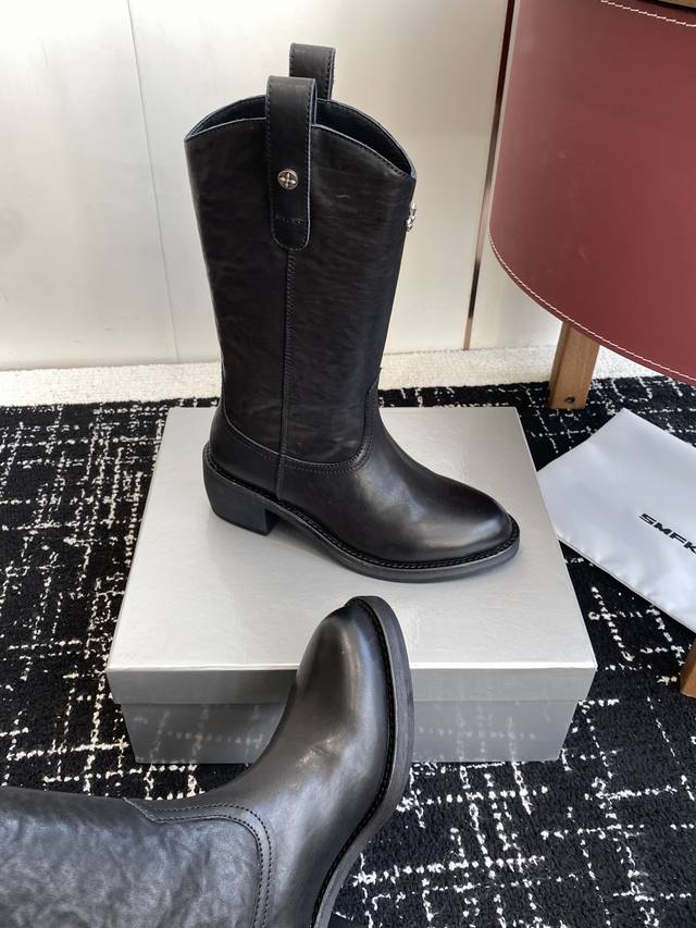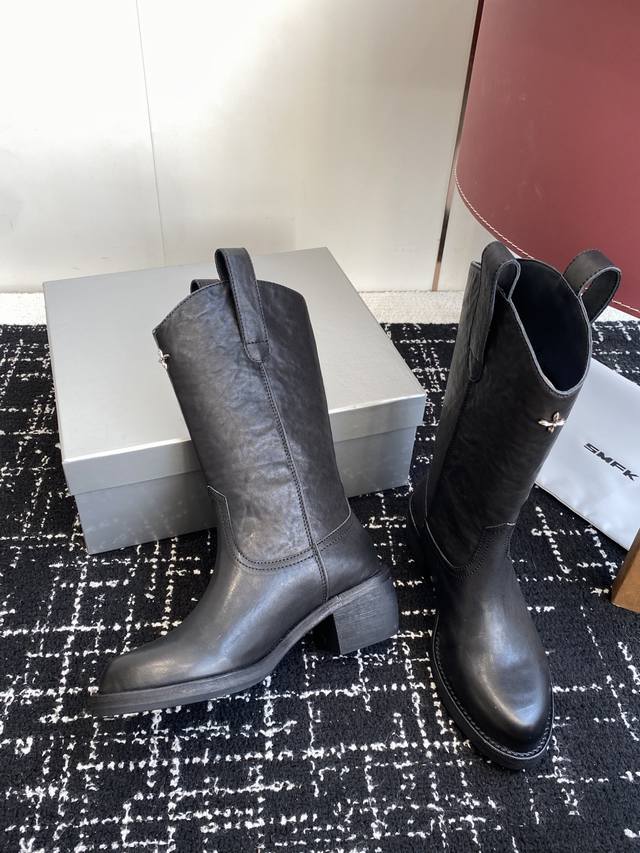 Smfk cross-stitch new cowboy boots, a touch of yellow in autumn, actually very stylish. These upgraded
