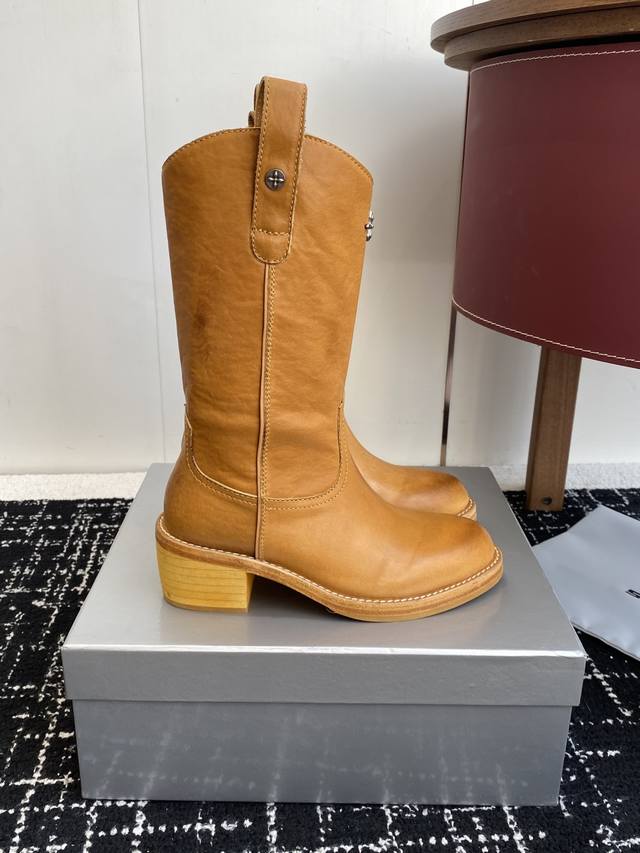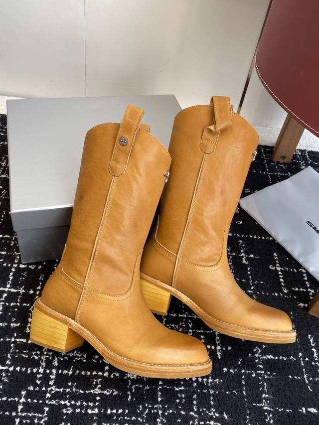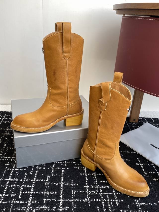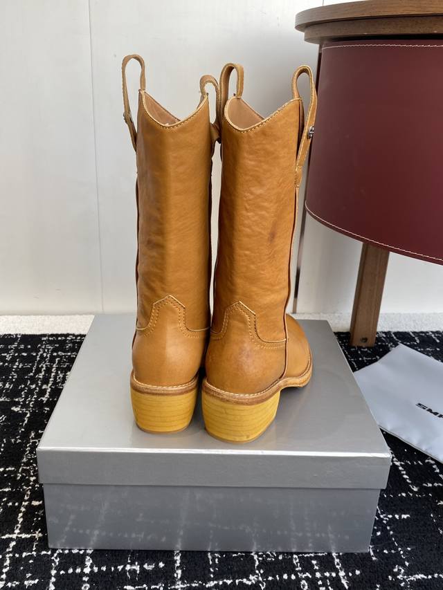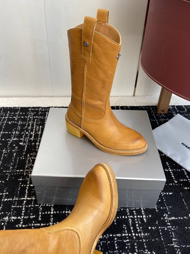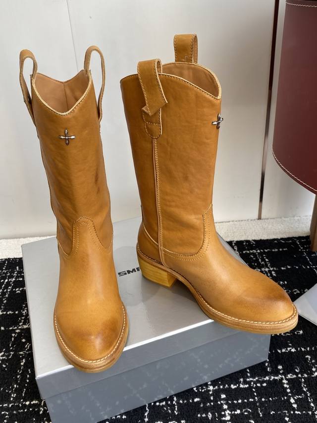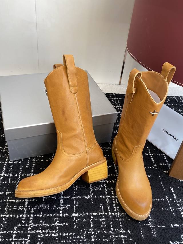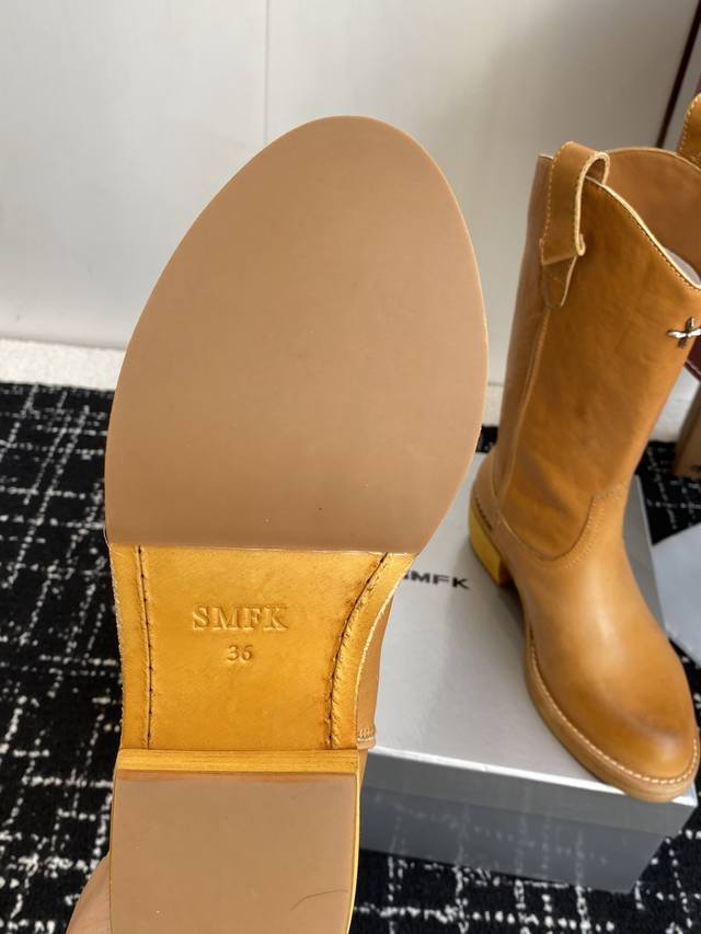Smfk cross-stitch new cowboy boots, a touch of yellow in autumn, actually very stylish. These upgraded