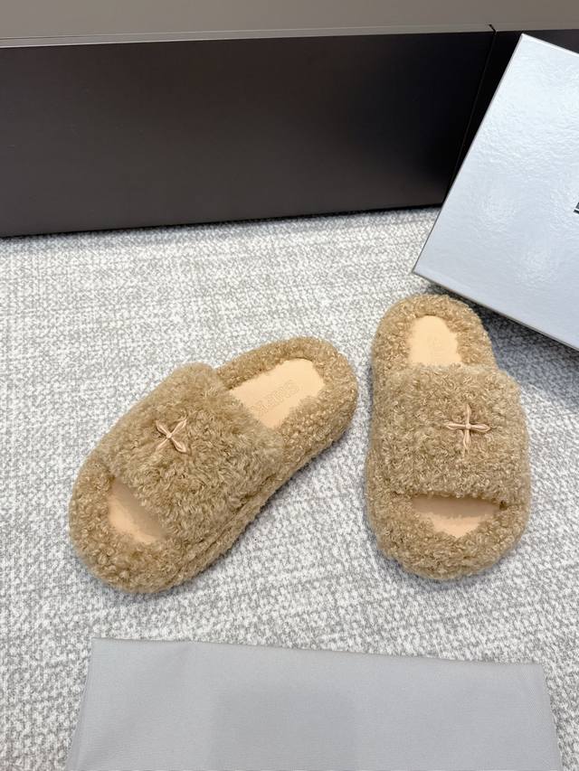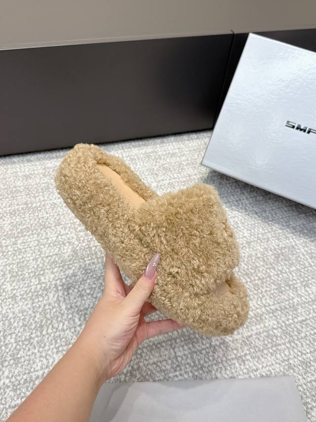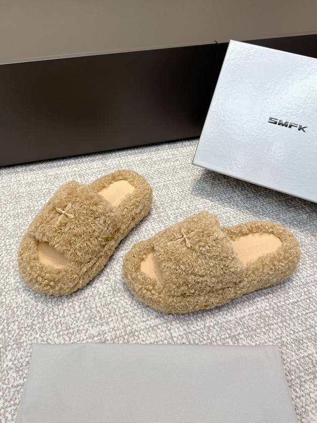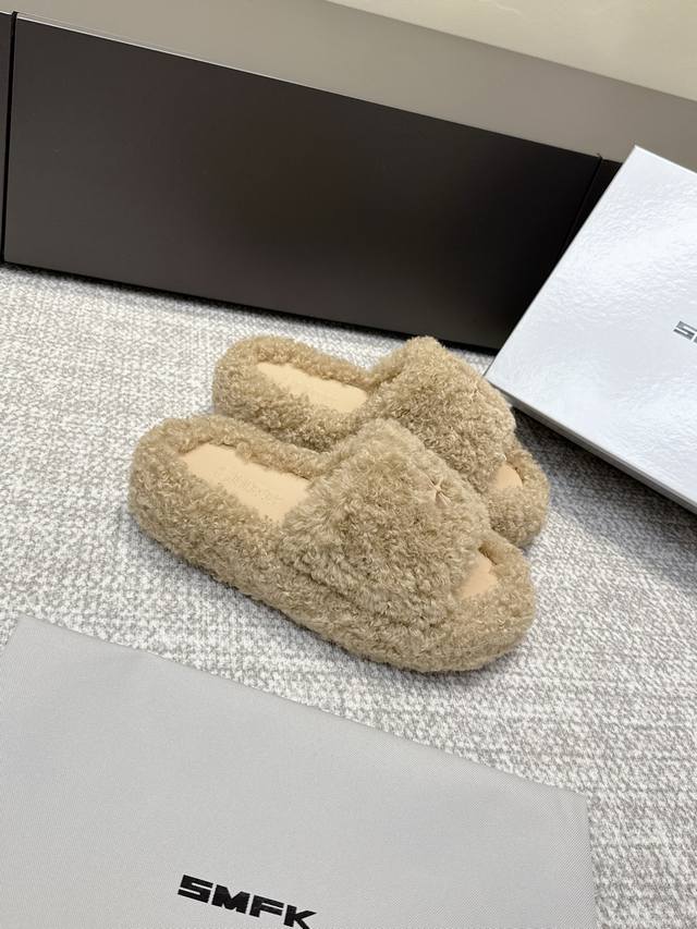 Smfk platform slippers, a super popular style, I've been obsessed with them! Many online influencers and bloggers are wearing them. Cleverly incorporating brand elements, they're fashionable, versatile, and a favorite among hot girls. Material: Wool lining, synthetic leather insole, original metal logo, original TPU anti-slip outsole. Comes with packaging. Size: #35-40. Size 40 is custom-made and non-refundable.