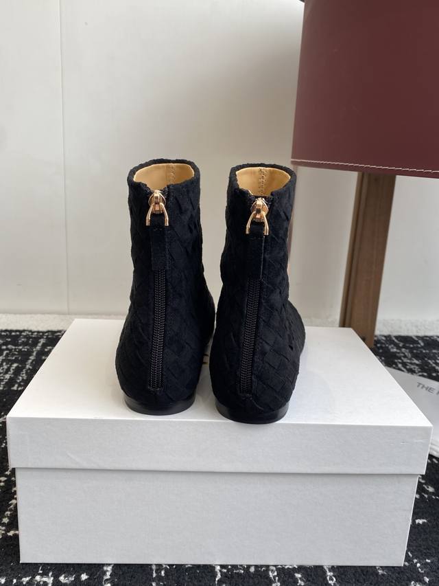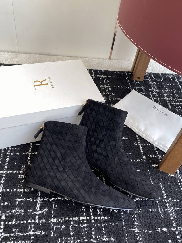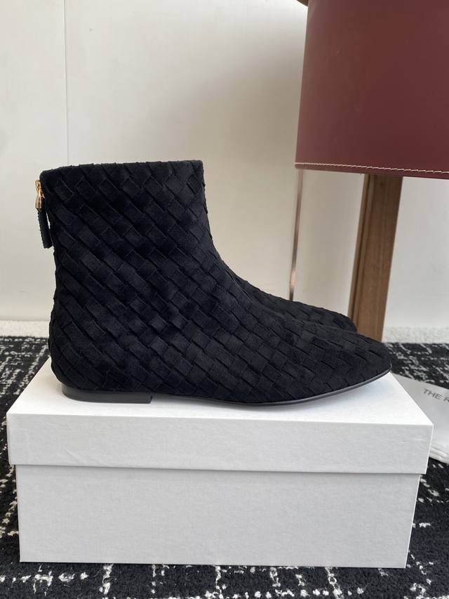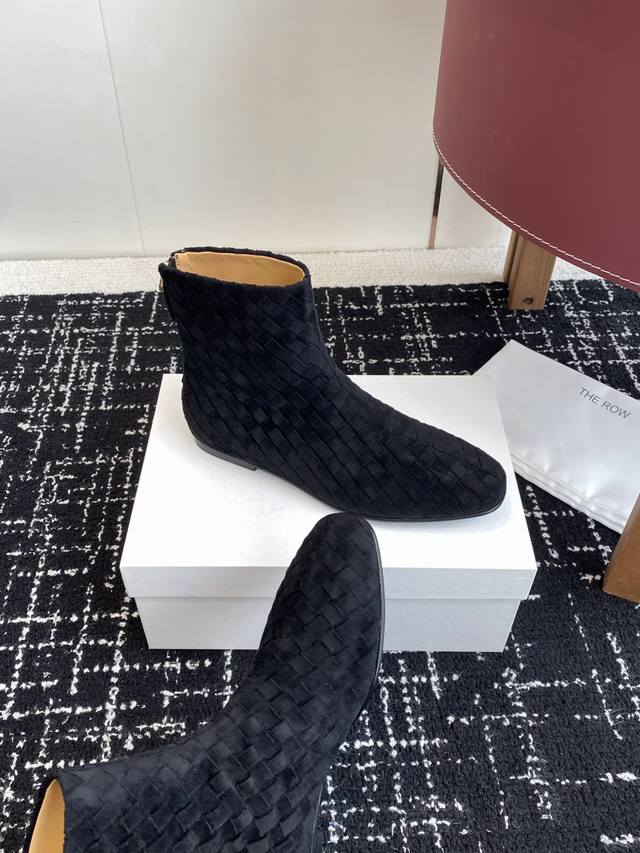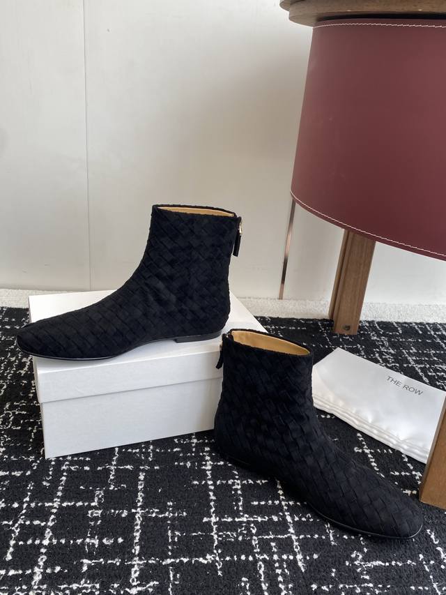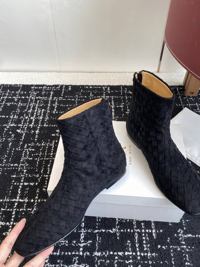 The Row new woven ankle boots, minimalist and high-end flat boots, super soft suede