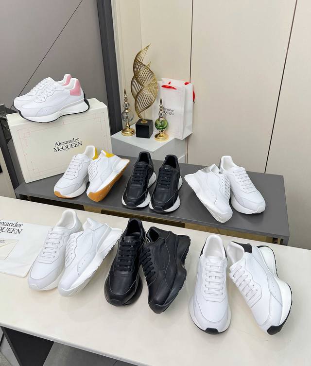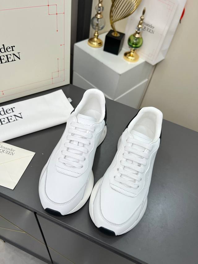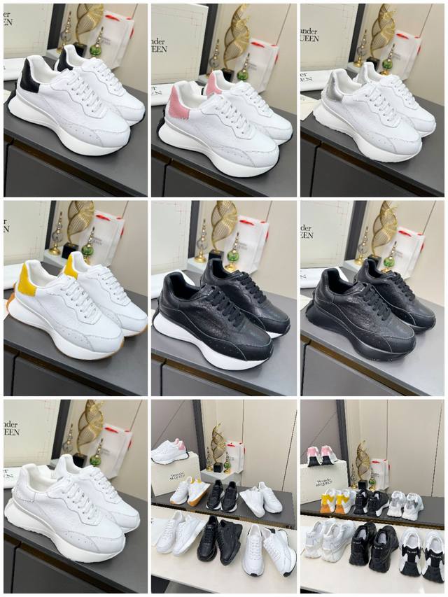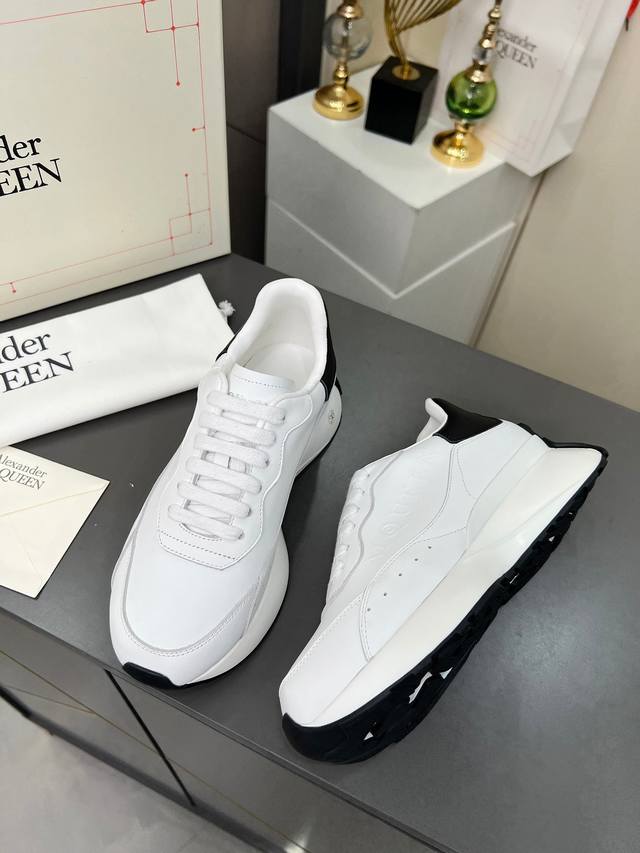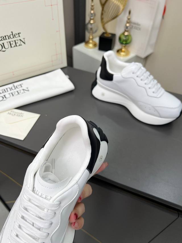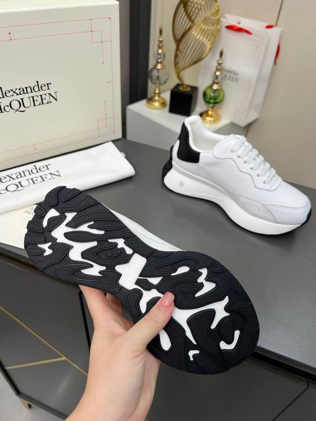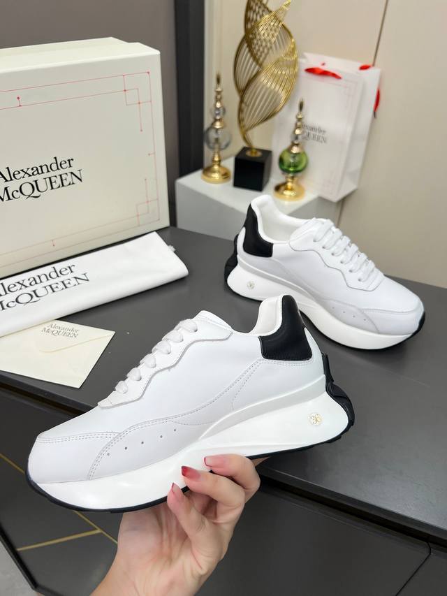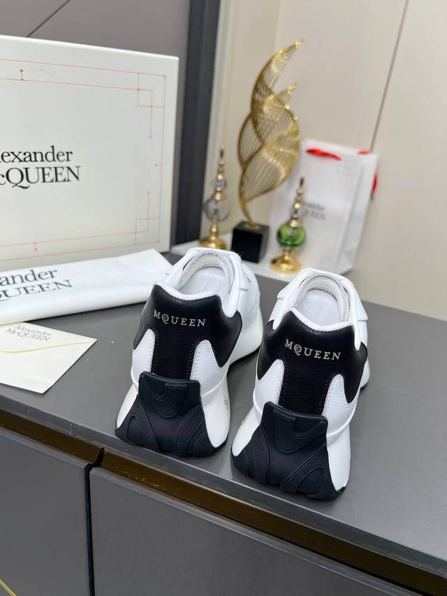 High-quality version 35-44 couple shoes, Alexander McQueen lace-up round toe low-top casual shoes, latest 2025 Milan Fashion Week runway style. Unique and stylish design, super fashionable on the feet. The round toe design allows for complete toe freedom. Extremely high quality, purchased multiple original pairs and disassembled for replication. Super popular style, boutique quality! Material: Top layer cowhide; Lining: Sheepskin lining; Insole: Active sheepskin latex insole; Outsole: Original mold vacuum-sealed outsole; Sizes: Women's 35-40, factory price; Men's 39-44, factory price.