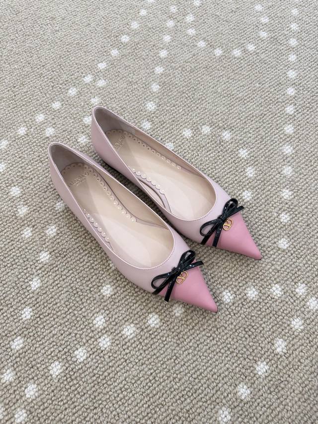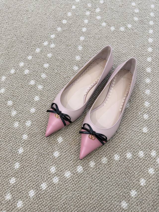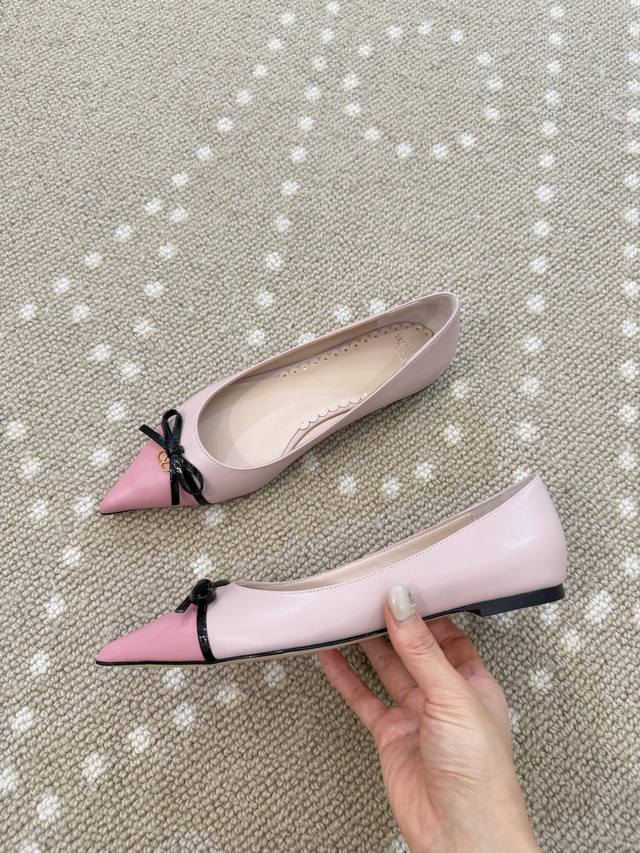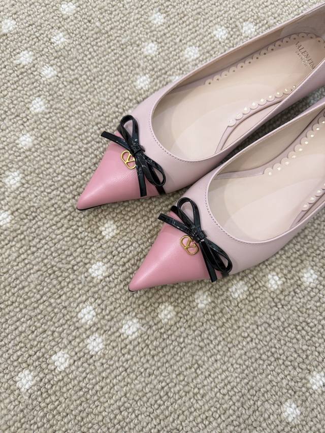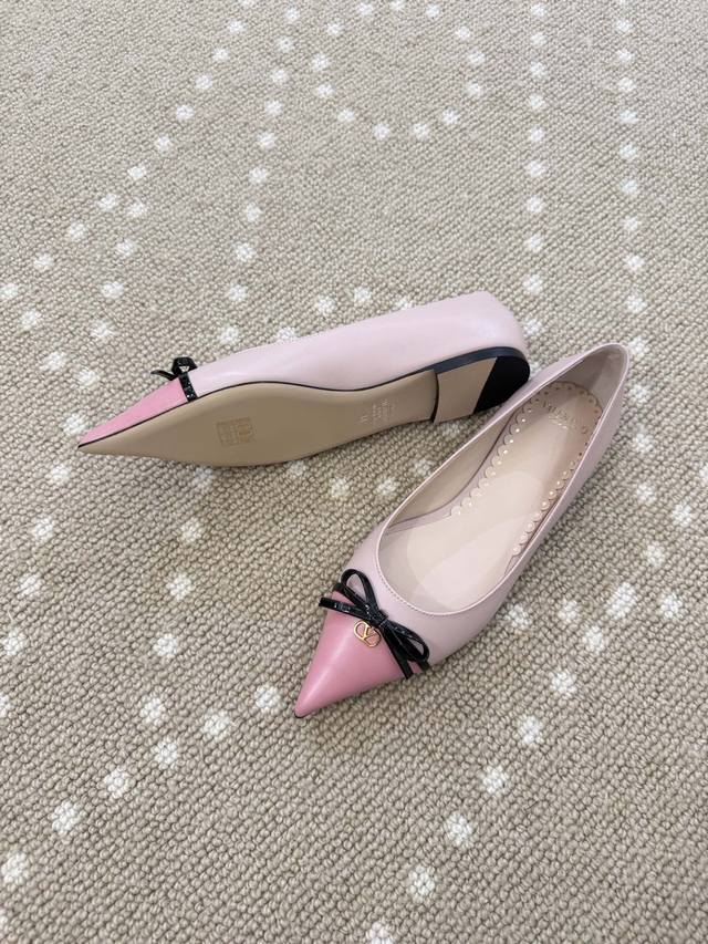 High-quality VT 25 new bow-knot color-blocked flat shoes Ddd - imported calfskin upper, sheepskin lining, sheepskin insole. Ddd Patent leather bow decoration with mini Vlogo embellishment. Ddd Italian genuine leather outsole. Ddd Size: 35-40 40 (fixed) DDD
