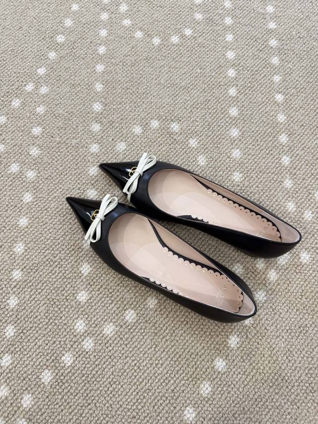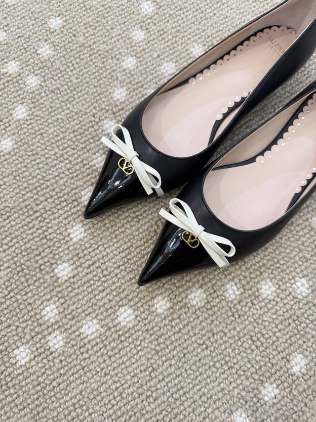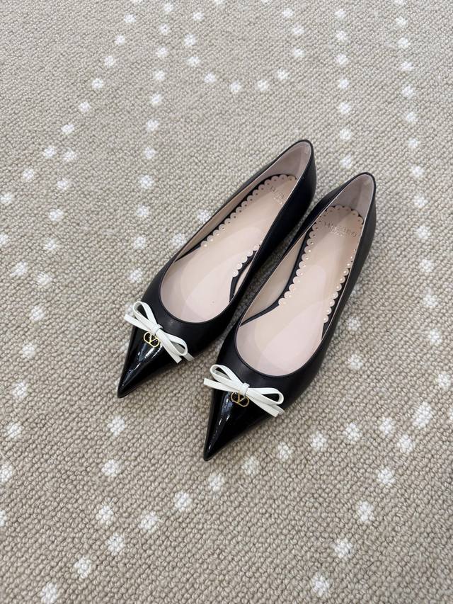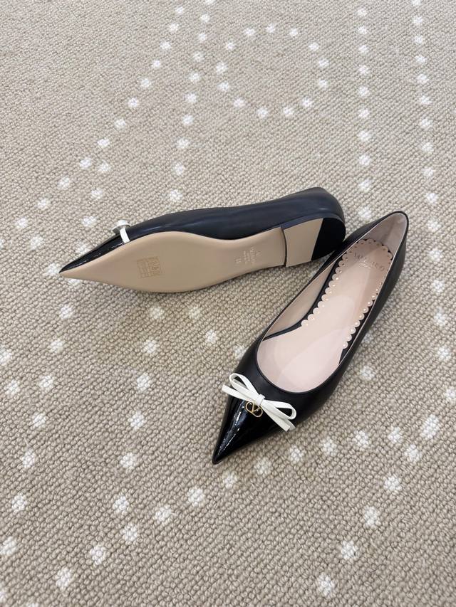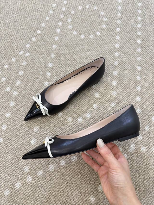 High-quality VT 25 new bow-knot color-blocked flat shoes Ddd - imported calfskin upper, sheepskin lining, sheepskin insole. Ddd Patent leather bow decoration with mini Vlogo embellishment. Ddd Italian genuine leather outsole. Ddd Size: 35-40 40 (fixed) DDD