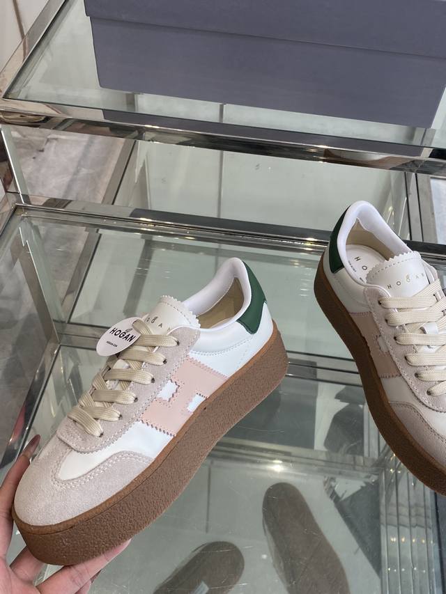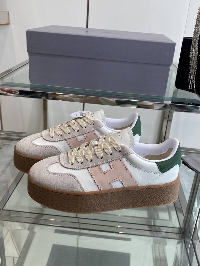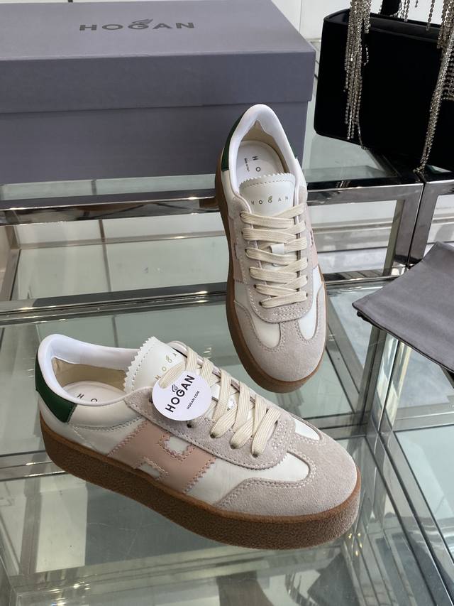 Hogan 25Ss Latest Platform Series H698 Thick-Soled Casual Sports Shoes (German Training Shoes) Original Purchase, Developed and Made. This Platform series sports and casual shoe features clean lines and a reconstructed style, exuding a cool and confident stride. It cleverly blends retro elements with urban fashion, with a simple and neat design that doesn't lack a distinctive and original personality. Material: Original custom imported top-grain cowhide suede. Lining: Original custom soft sheepskin lining. Outsole: Original molded non-slip rubber outsole. Sole thickness: 4.5cm. Sizes: 35-40, 40 custom-made.