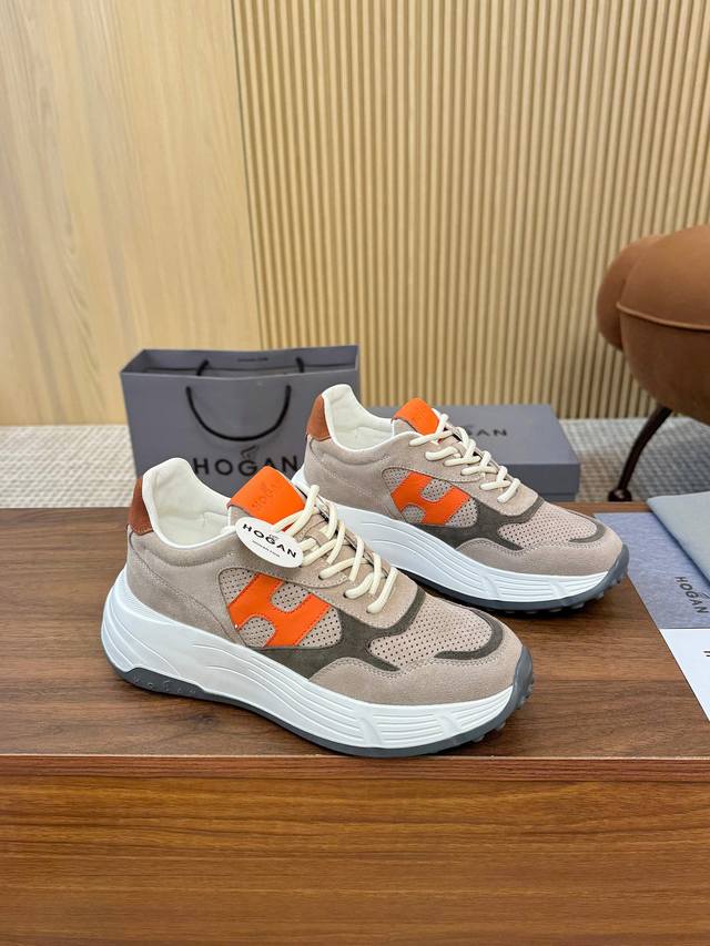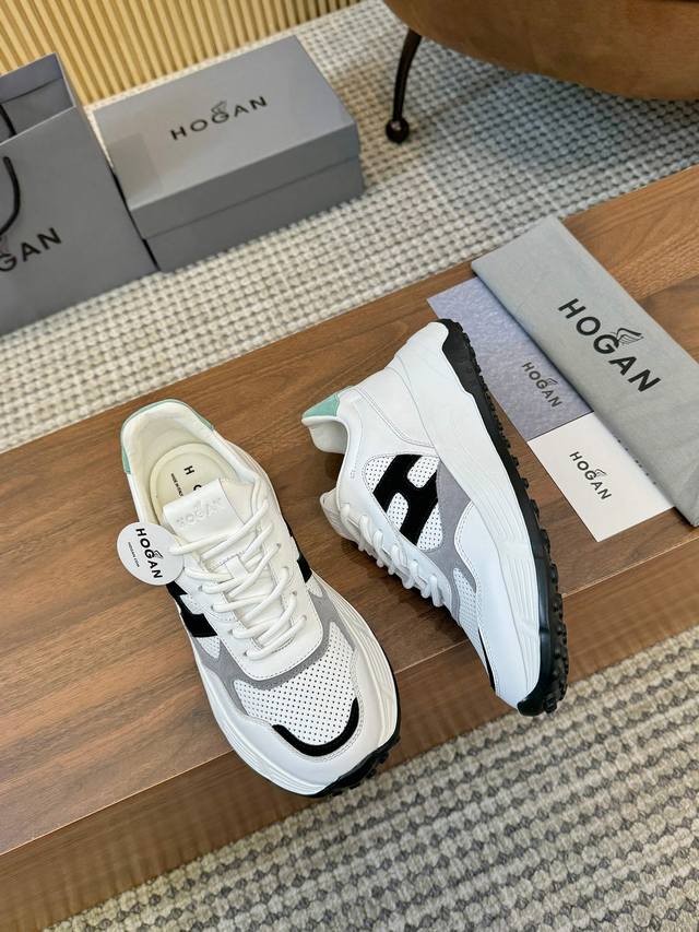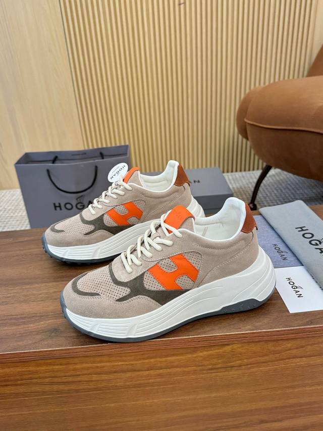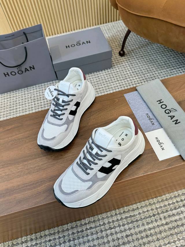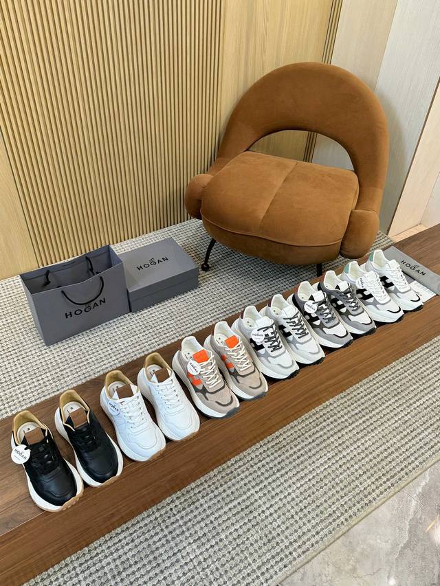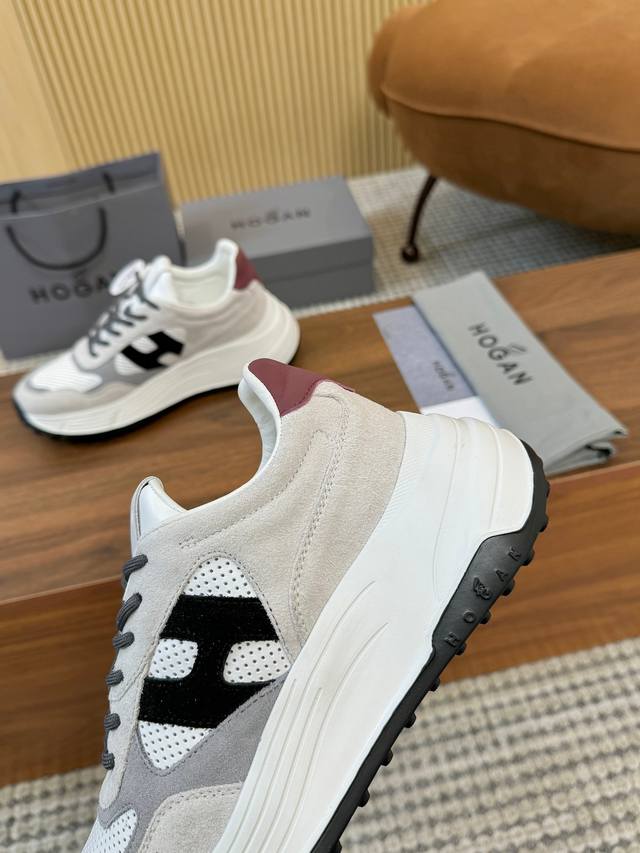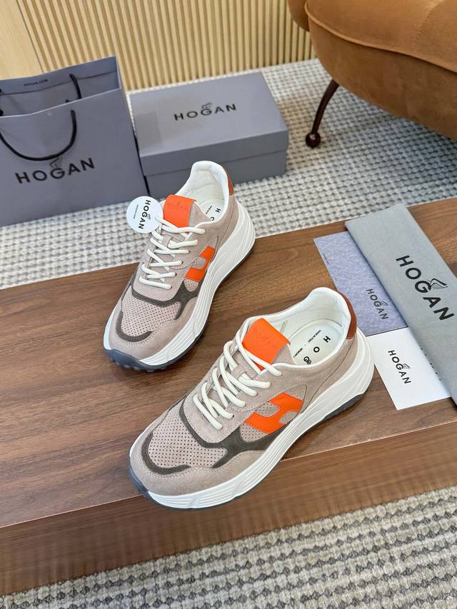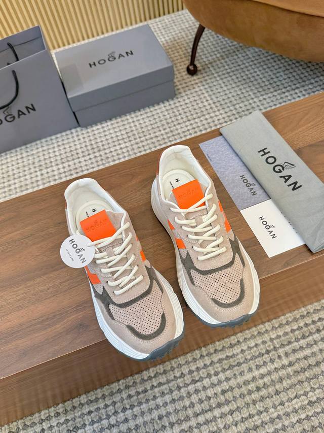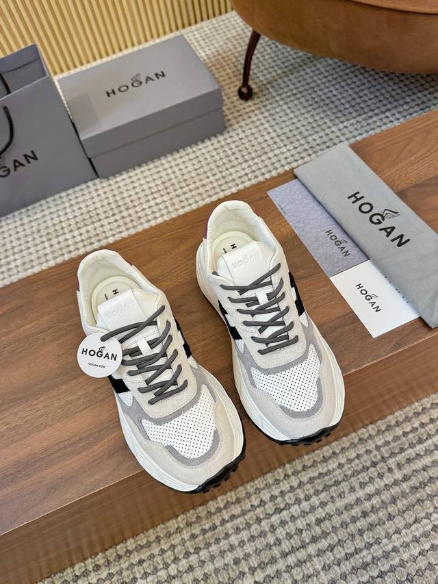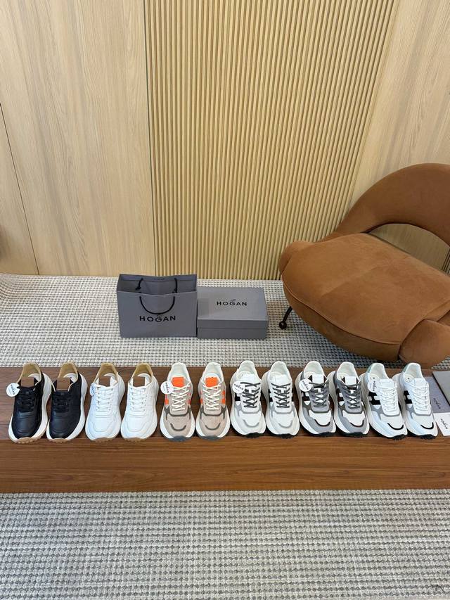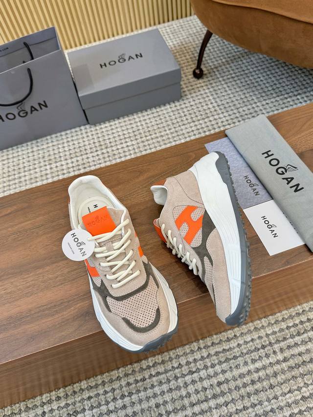 Hogan athletic casual couple shoes, featuring a suede calfskin patchwork design, contrasting logo on the side, embossed trademark on the tongue, finely symmetrical perforations, perfectly smooth lines, and a thin strap design. A classic and timeless choice, perfect for couples. Sizes 35-44, size 45 can be custom-made. Image reposted for guaranteed popularity.] Factory price: Price not provided]