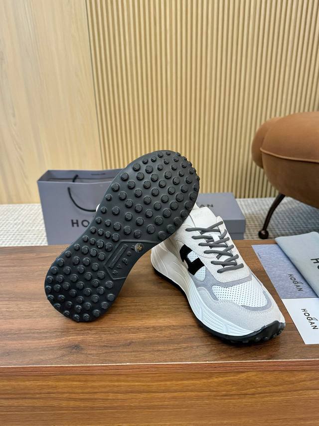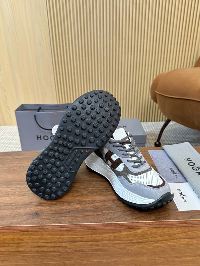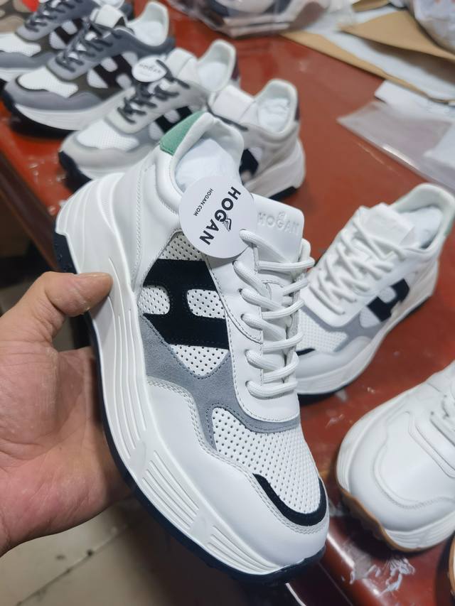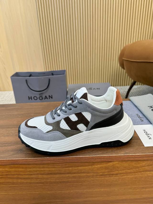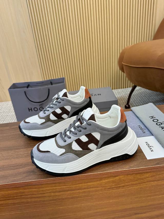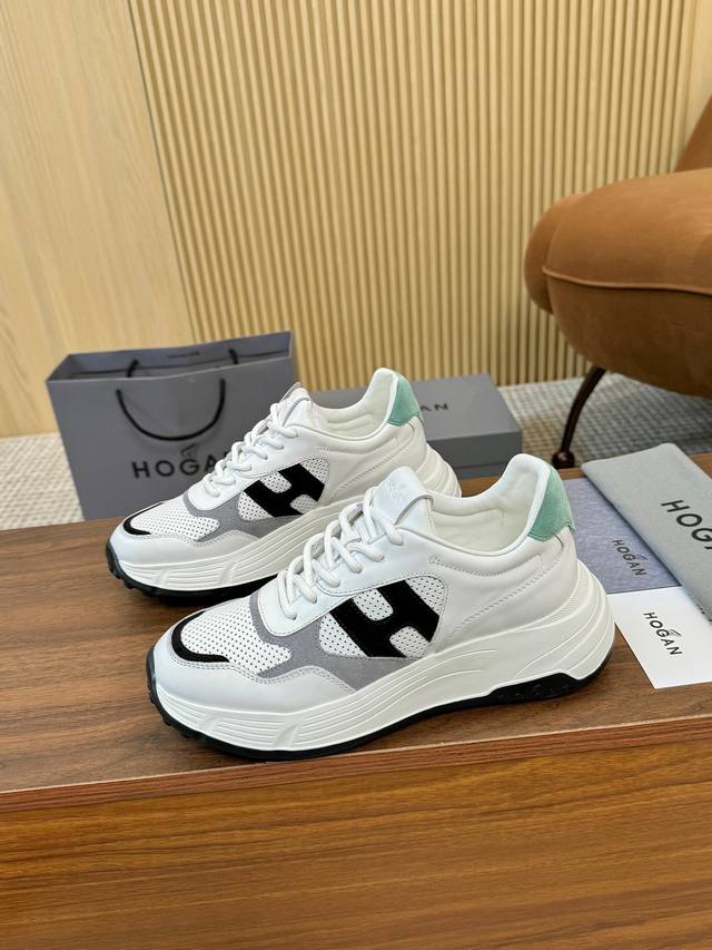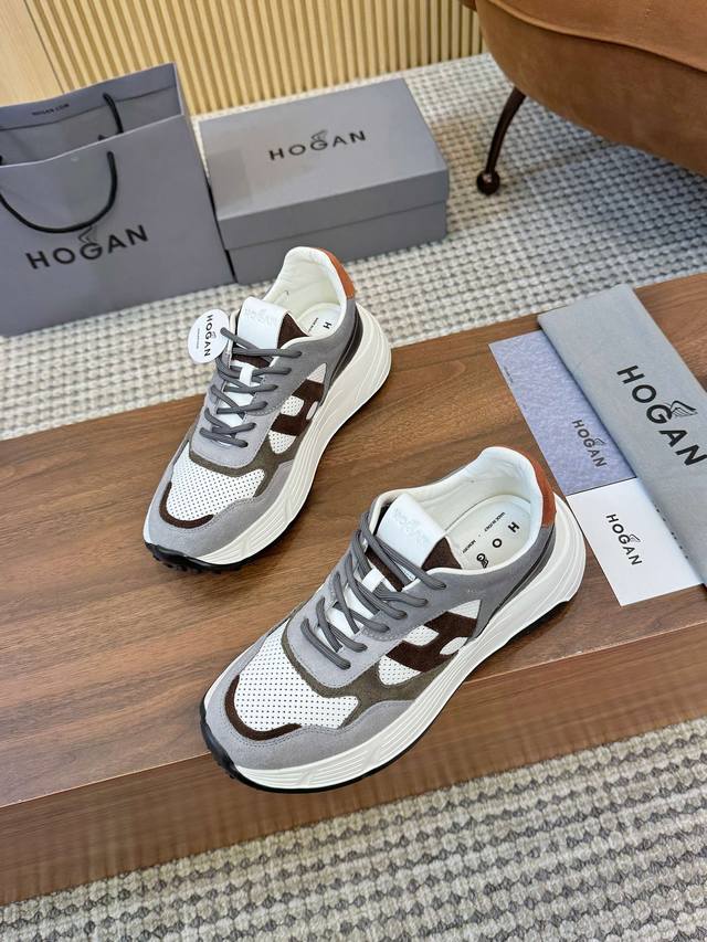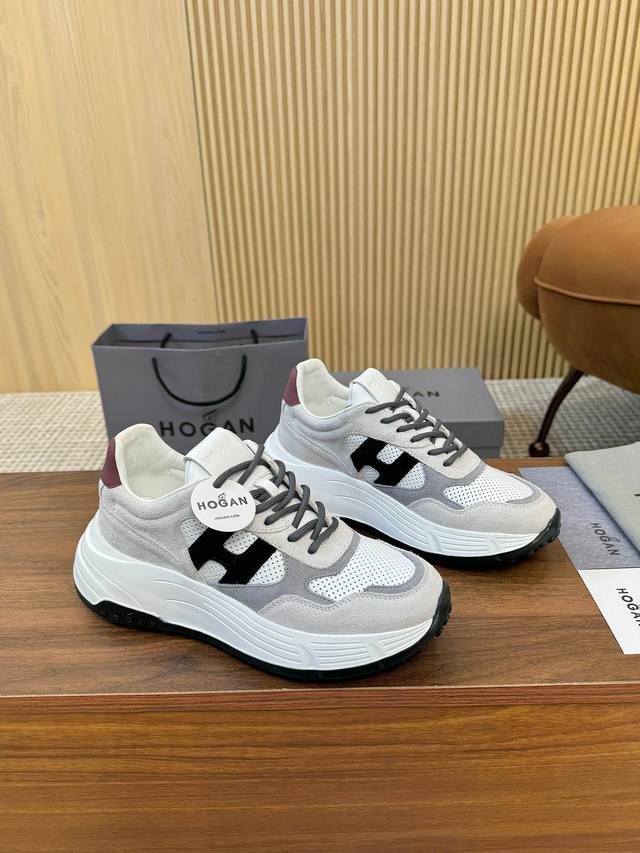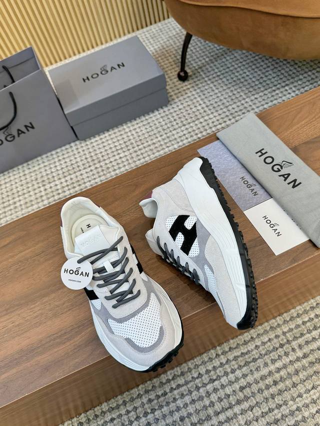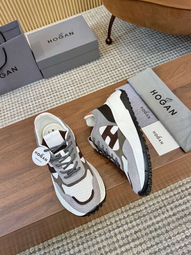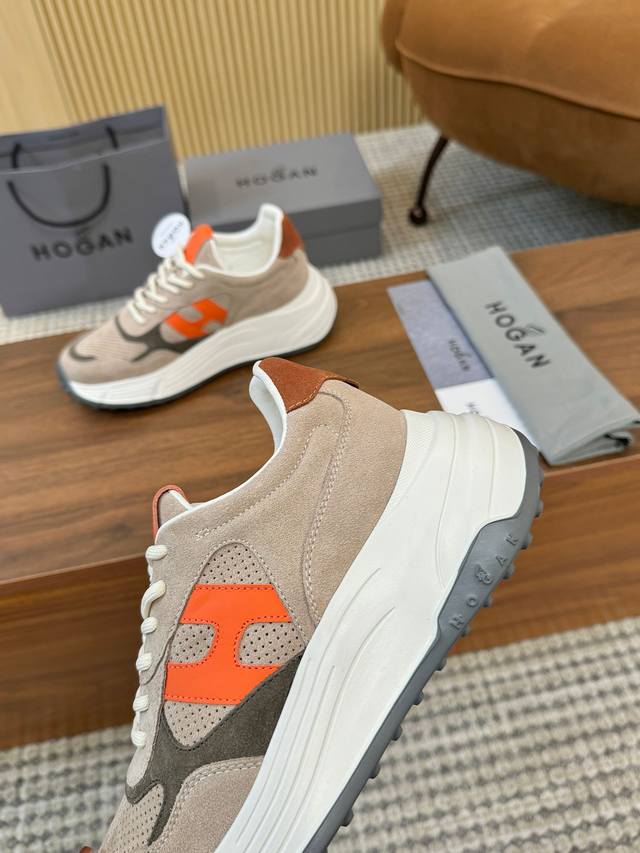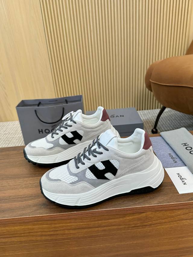 Hogan athletic casual couple shoes, featuring a suede calfskin patchwork design, contrasting logo on the side, embossed trademark on the tongue, finely symmetrical perforations, perfectly smooth lines, and a thin strap design. A classic and timeless choice, perfect for couples. Sizes 35-44, size 45 can be custom-made. Image reposted for guaranteed popularity.] Factory price: Price not provided]