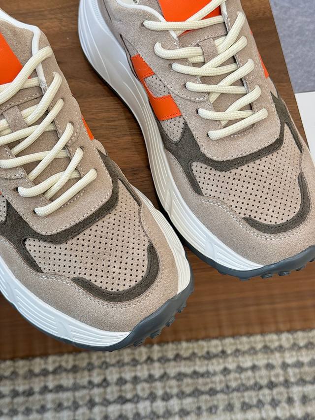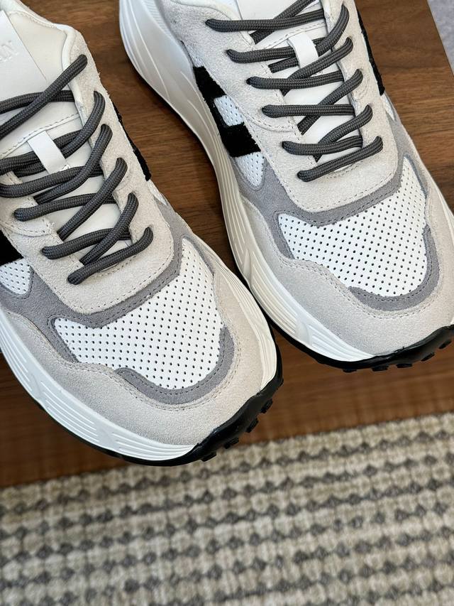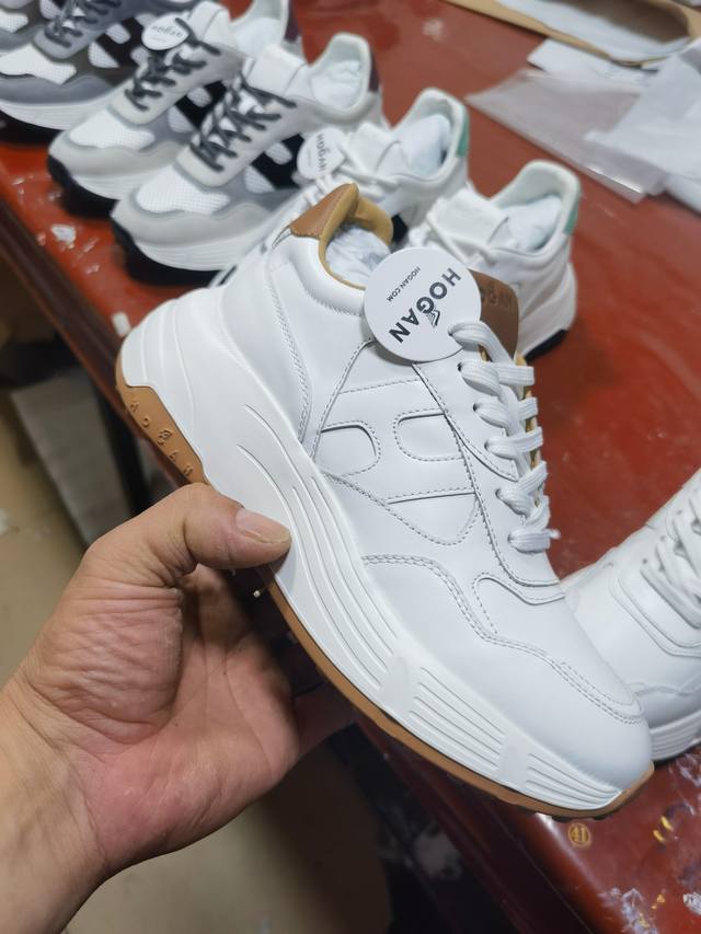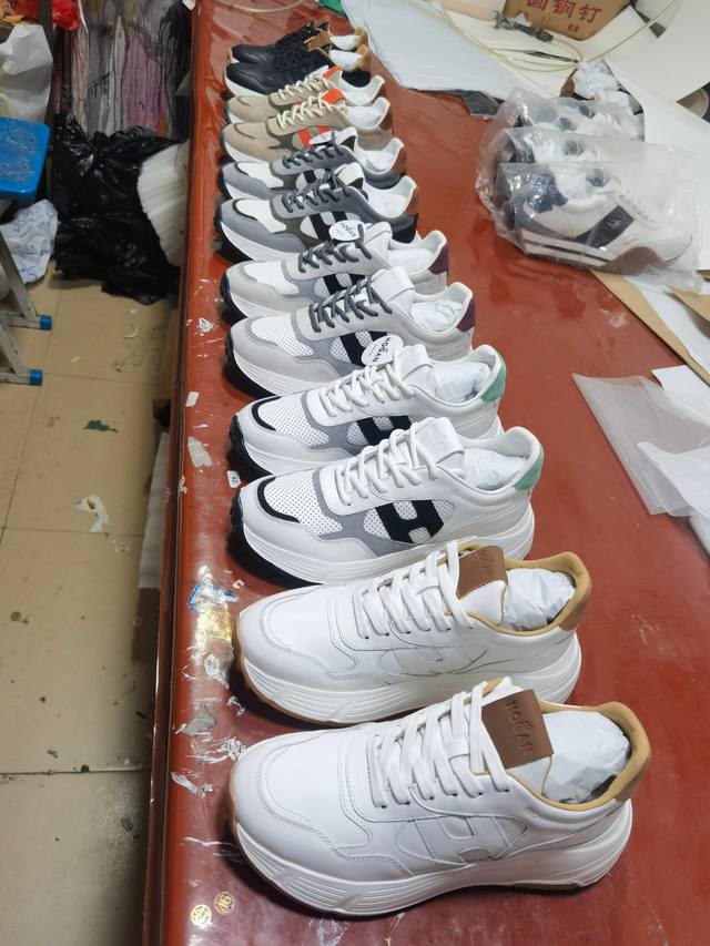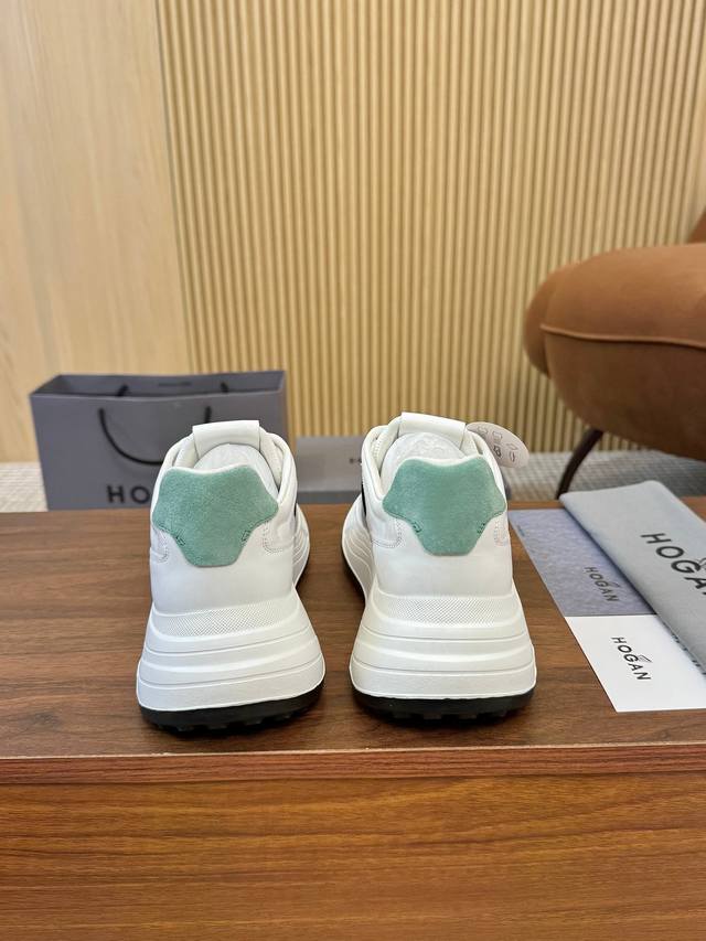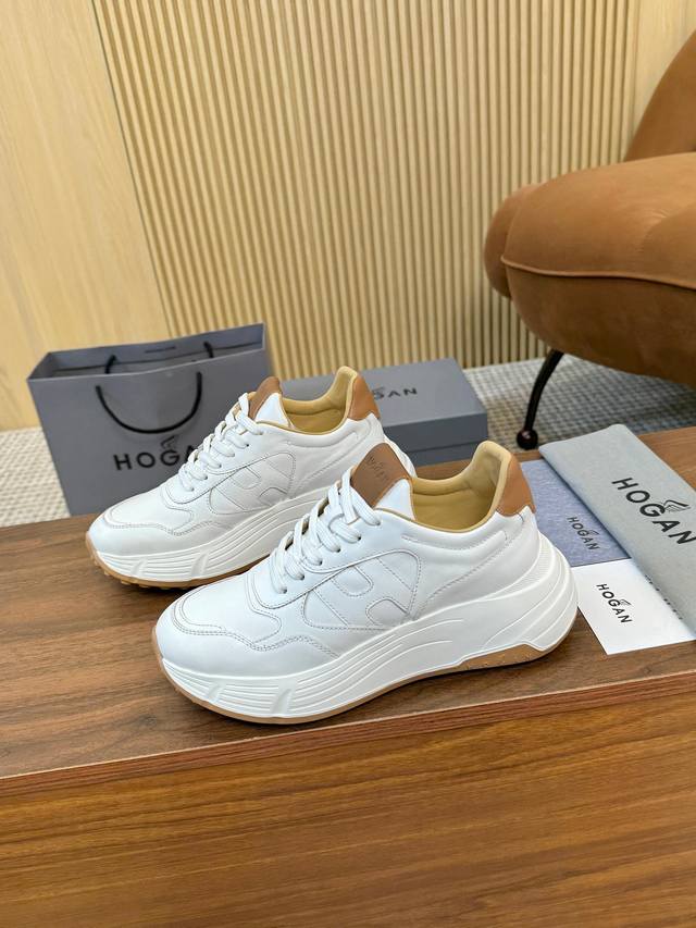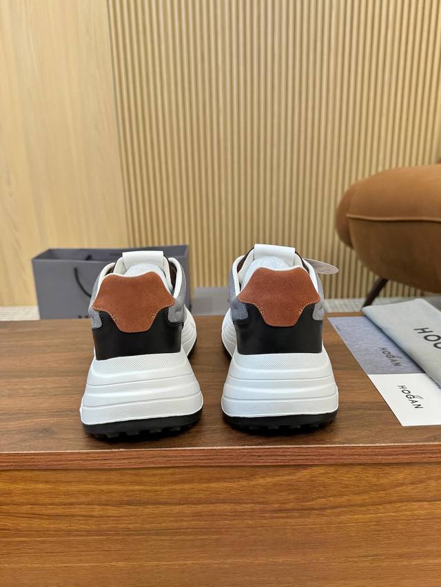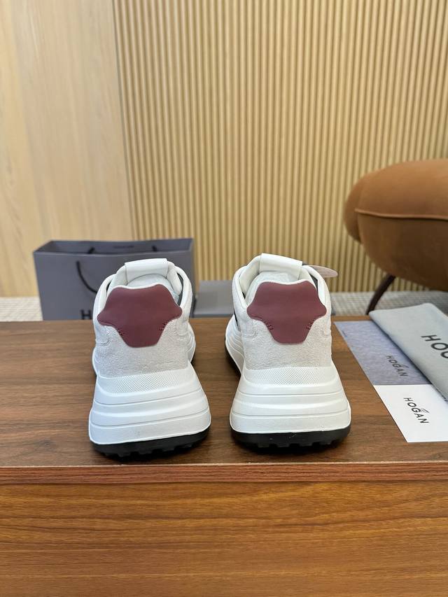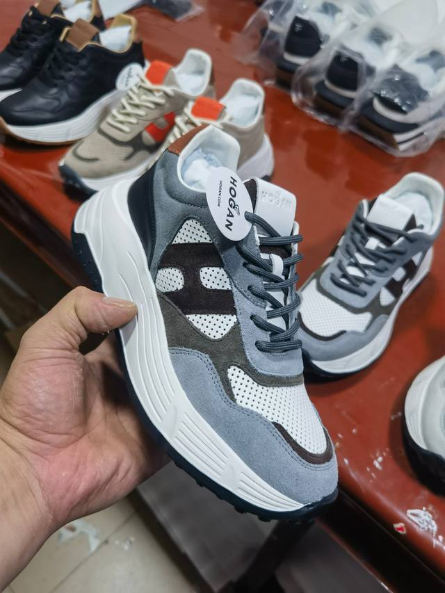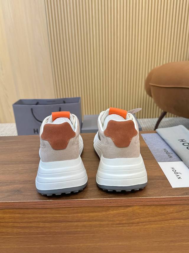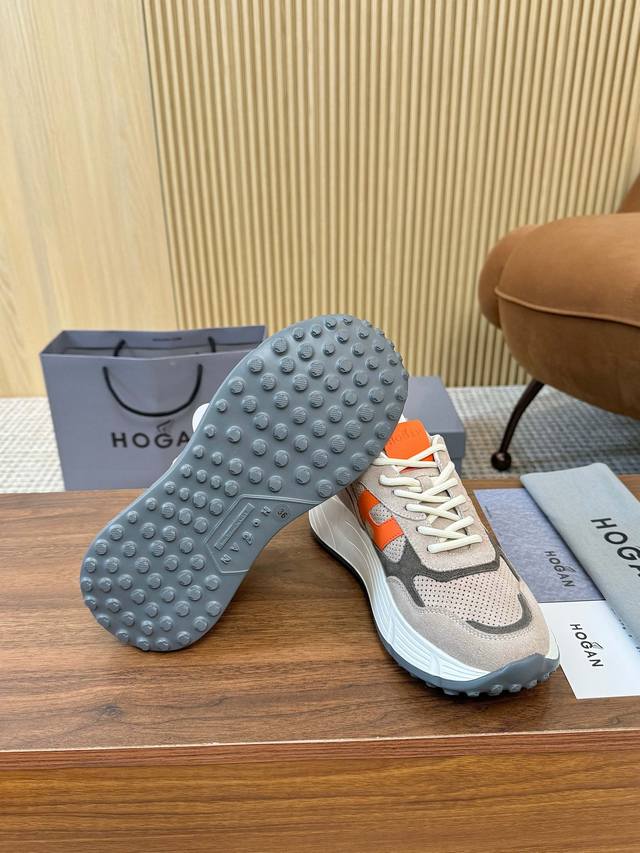 Hogan athletic casual couple shoes, featuring a suede calfskin patchwork design, contrasting logo on the side, embossed trademark on the tongue, finely symmetrical perforations, perfectly smooth lines, and a thin strap design. A classic and timeless choice, perfect for couples. Sizes 35-44, size 45 can be custom-made. Image reposted for guaranteed popularity.] Factory price: Price not provided]
