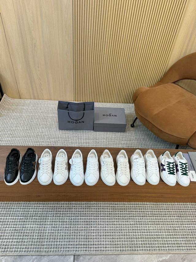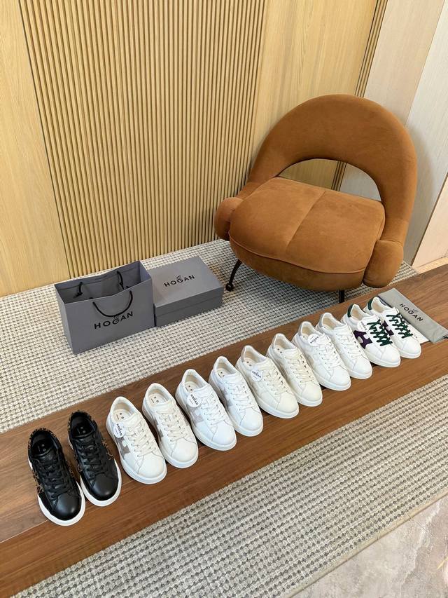 Hogan classic sneakers blend elegance and modernity. Rich color combinations and the iconic Hogan logo on the side create a sophisticated look. The slim cut and delicate stitching add texture, while the thin straps maintain a classic sneaker style. A versatile piece for every wardrobe, these sneakers are a must-have for every woman. Sizes 35-40, 41 available by custom orders. Guaranteed to sell out quickly! Factory direct price: DDD
