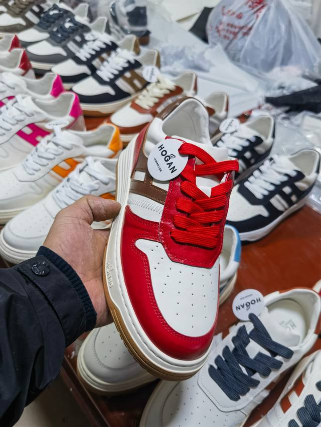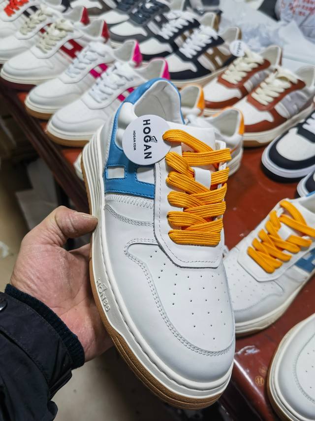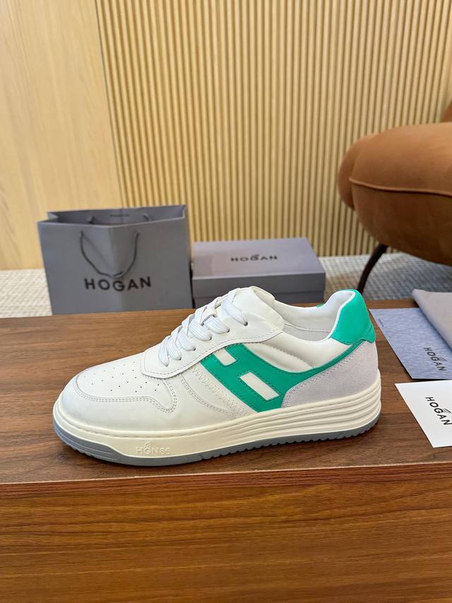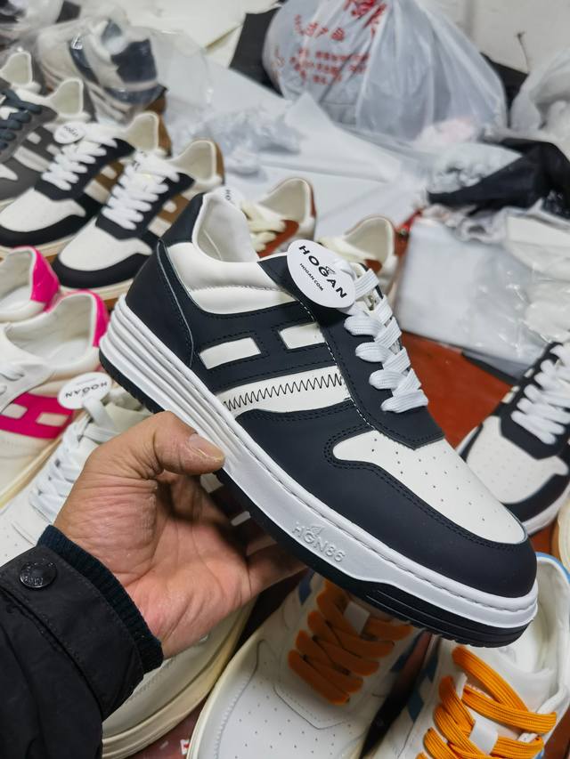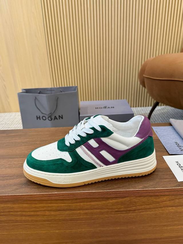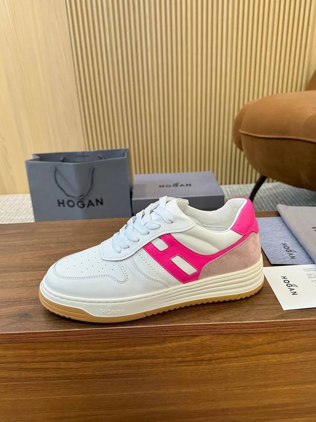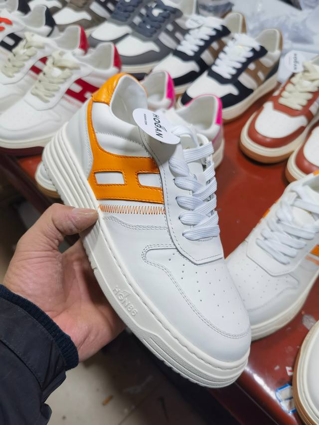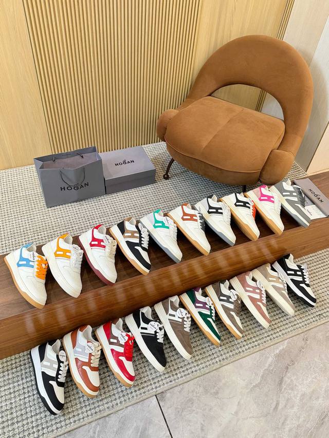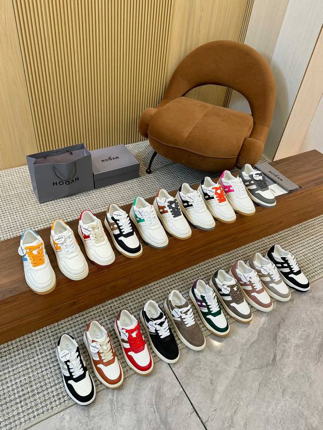 Hogan round-toe casual shoes, calfskin with contrasting colors, cleverly designed H logo integrated with smooth lines, lightweight, durable, and highly elastic outsole. 3.8cm thick heel for excellent elasticity. Soft and bright colors, a casual urban style, perfect for all seasons, and a favorite for couples. Sizes 35-44, size 45 can be customized. Guaranteed to sell out quickly! Factory price! p: DDD