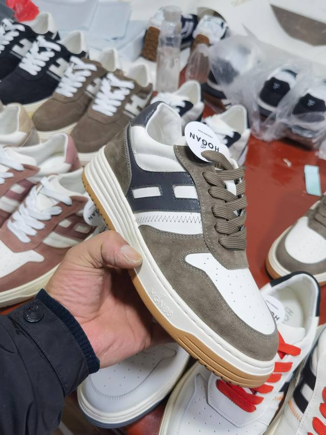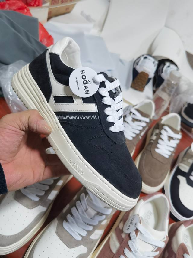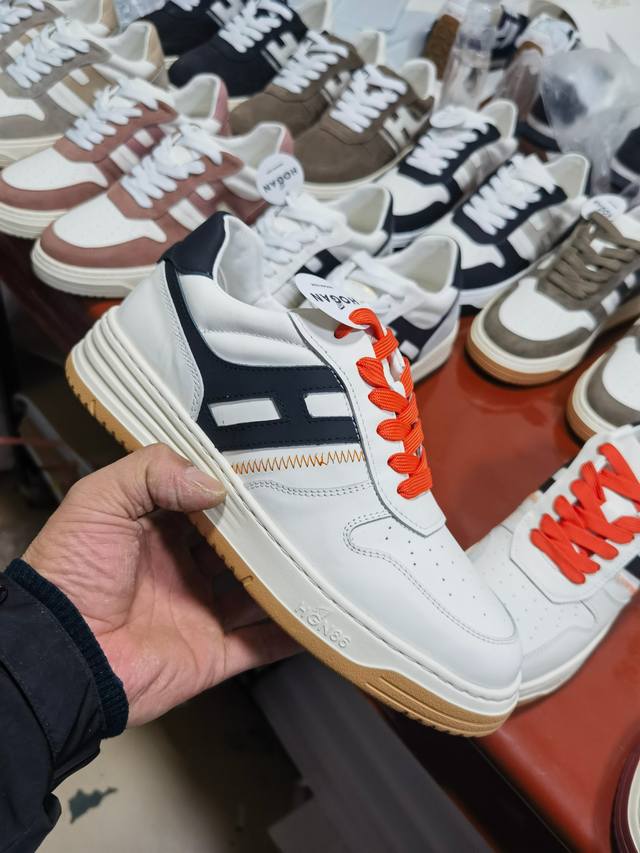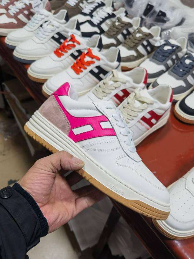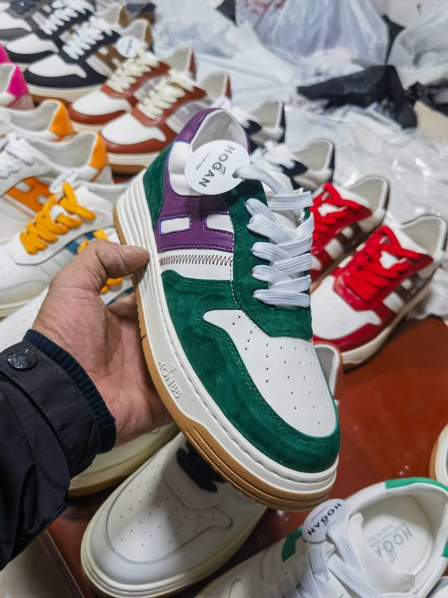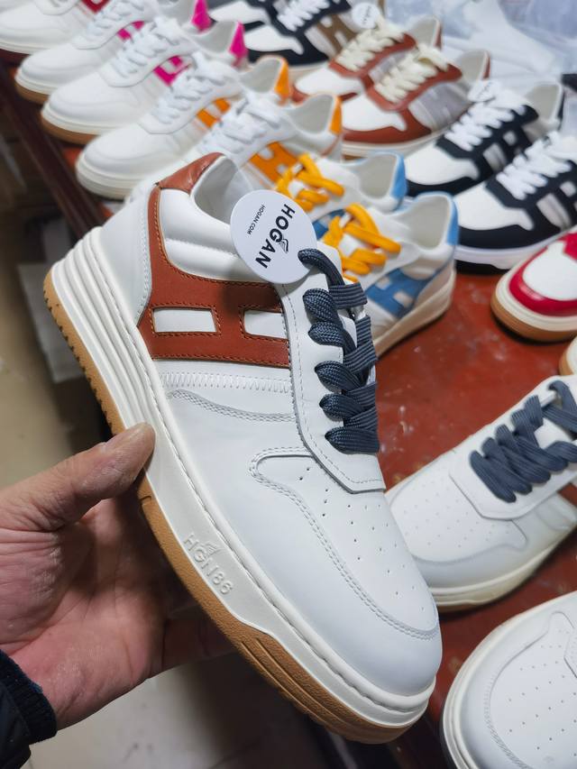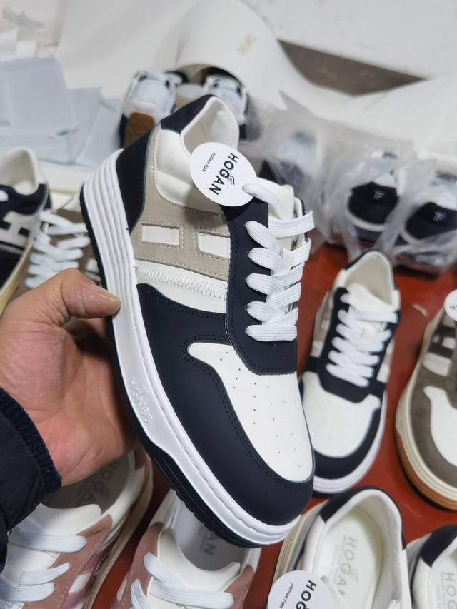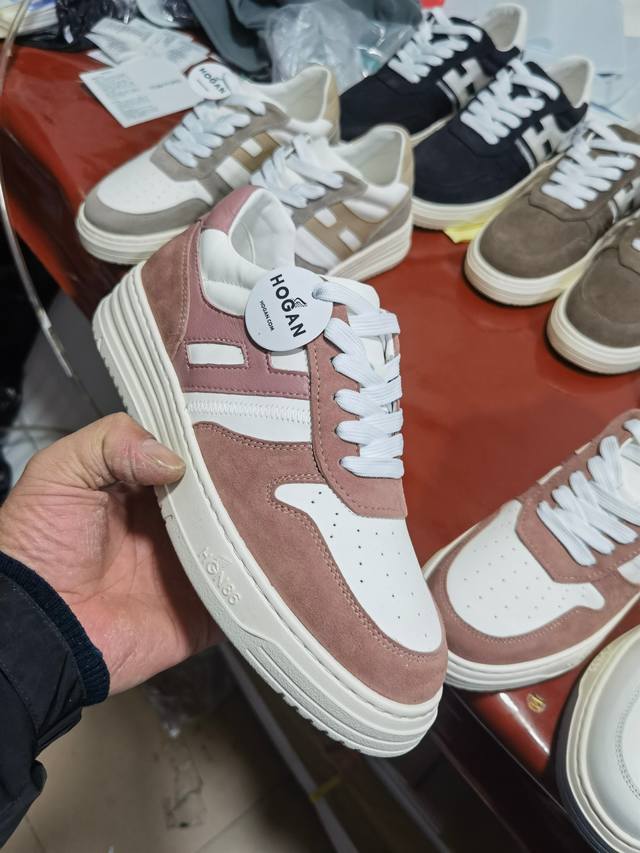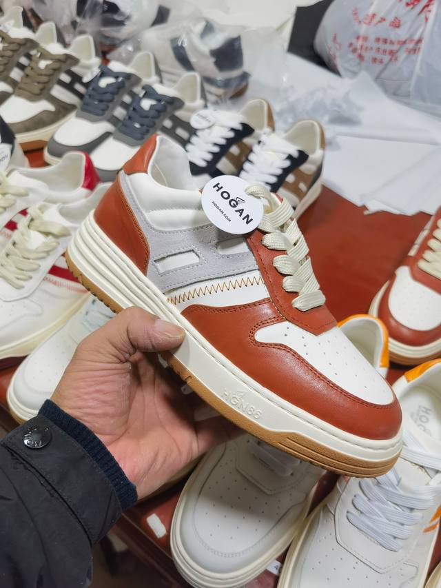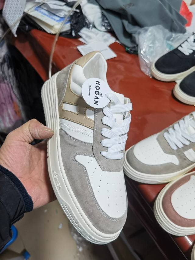 Hogan round-toe casual shoes, calfskin with contrasting colors, cleverly designed H logo integrated with smooth lines, lightweight, durable, and highly elastic outsole. 3.8cm thick heel for excellent elasticity. Soft and bright colors, a casual urban style, perfect for all seasons, and a favorite for couples. Sizes 35-44, size 45 can be customized. Guaranteed to sell out quickly! Factory price! p: DDD