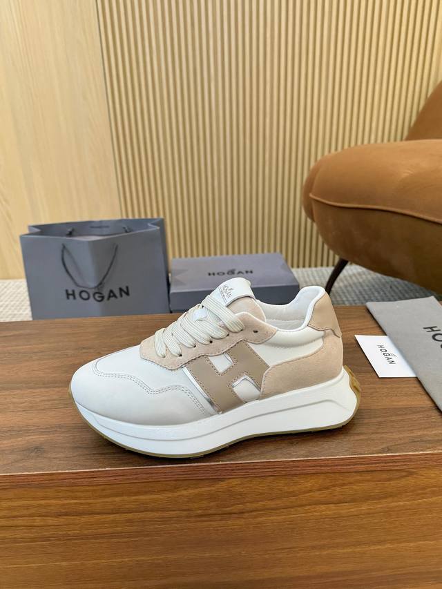 Hogan's new H-Stripes series couple's chunky platform sneakers, a must-have for any fashionista. Top-tier original version, sourced and developed. This H-Stripes series sneaker features a contrasting color, high-elasticity, thick sole for added height, giving the shoe a fresh and energetic look. It exudes style and captures attention, setting a new trend in modern urban fashion. Material: Original custom imported cowhide. Lining: Original cowhide lining. Sole: Exclusive molded ultra-lightweight, high-elastic material. Sole thickness: Approx. 4.5cm. Sizes: Women's 35-44, 45 custom-made.
