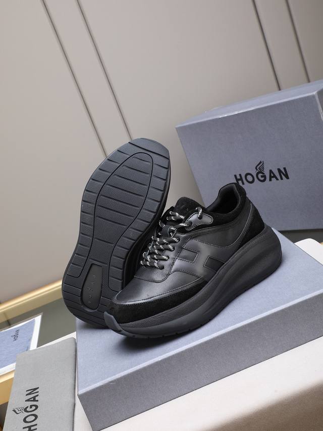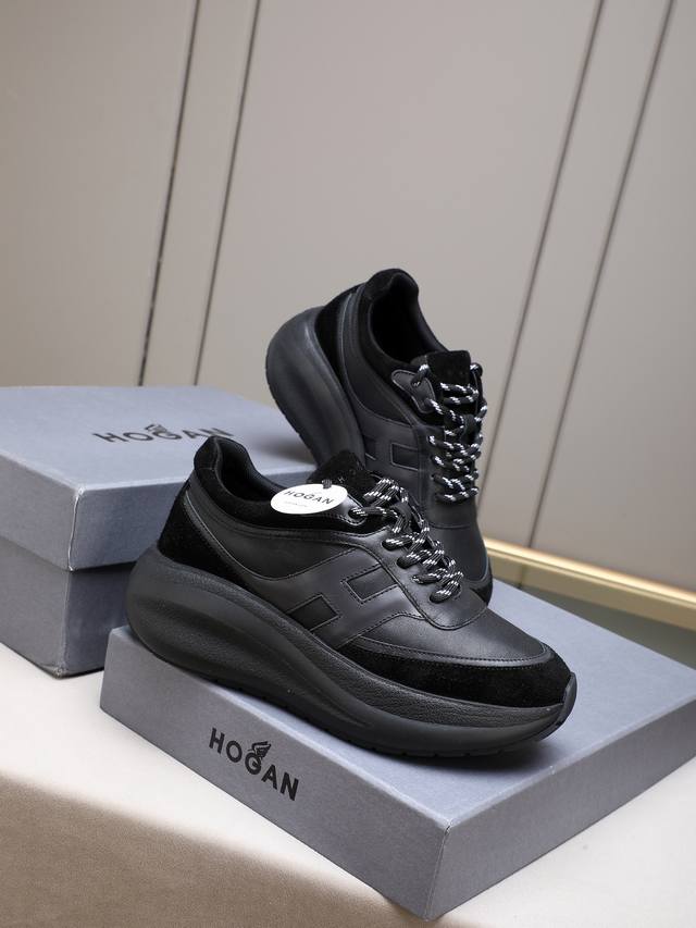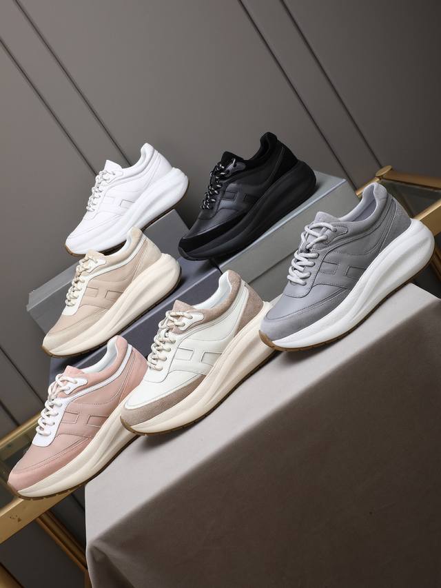 Hogan's newest model, exclusively 1:1 molded. The Hogan Chunky H696 series features exquisite design, sparkling with imagination and showcasing a trendy style. The chunky sole provides comfort and a slender, upright silhouette, reflecting a new everyday look and inspiring multifaceted creativity. This athletic casual shoe is crafted from Nappa leather and suede, featuring a dynamic new design with rounded lines on the upper and a large "H" logo on the side. The workmanship is exquisite and unique, and the memory foam insole is lightweight and comfortable. Sizes 35-40. DDD