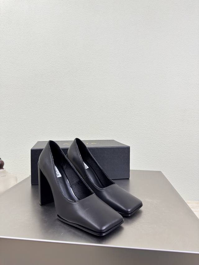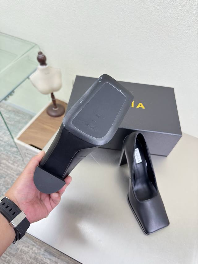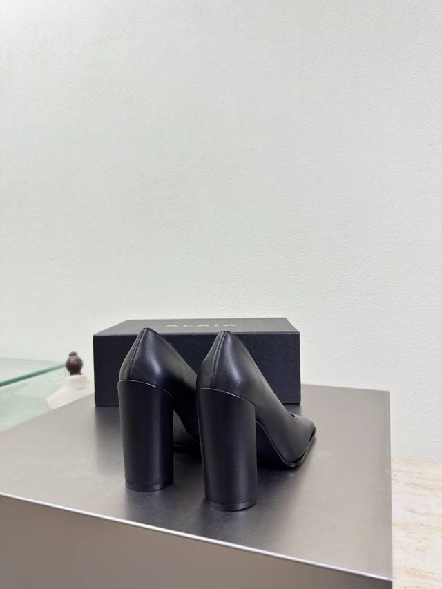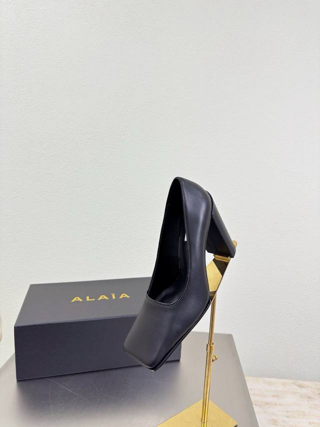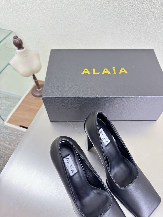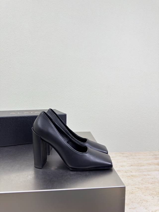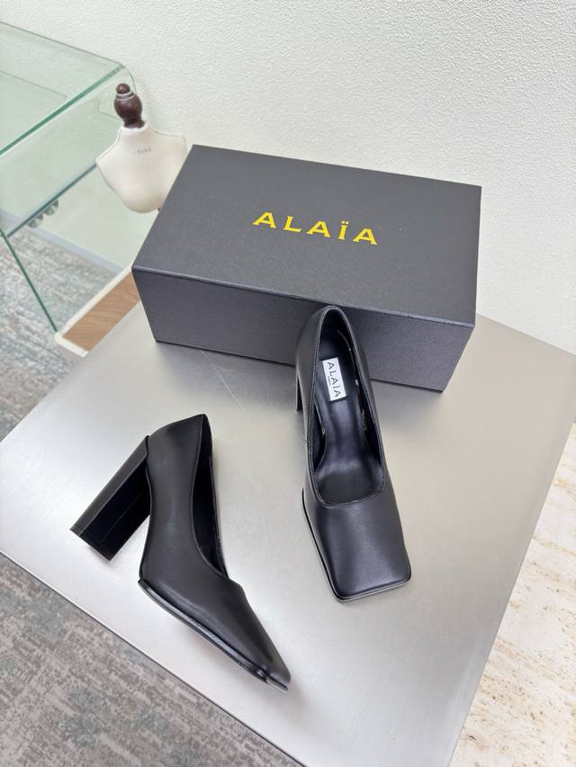 Horsehair material, square toe, 9cm heel, Alaia shoes. Love at first sight from Paris. Black calfskin. Alaia also has a sexy side. Easily paired with different styles and looks, whether jeans, suit pants, or pleated skirts, it elevates your outfit to fashion, elegance, and excellence. Made with top-grain cowhide leather. Sheepskin lining. Genuine leather outsole, identical to the original. Available in sizes 34, 35, 36, 37, 38, 39, 40, 41. Comes with original packaging.