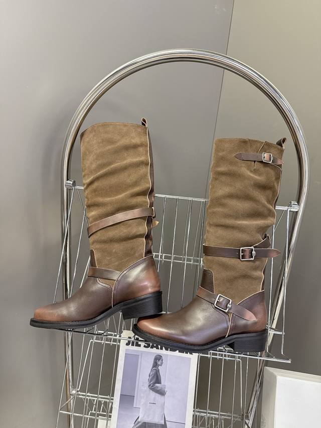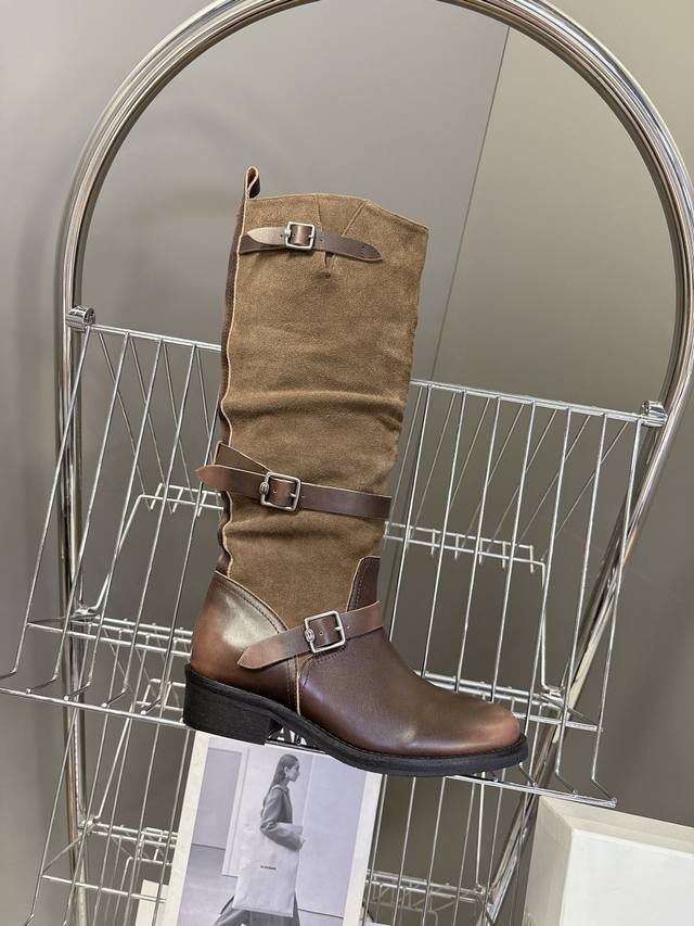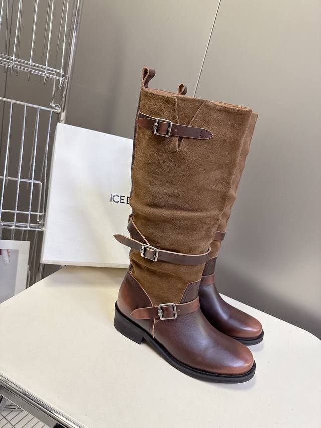 Ice Dust designer brand's latest autumn/winter retro leather boots, slouch boots. Recommended by many celebrities and fashion bloggers, these boots feature the most popular body-shaping design combined with Maillard-colored leather to create a unisex casual style that's both cool and relaxed. The slouch of the boot shaft adds a touch of high-fashion sophistication and can be paired with various styles of clothing. The upper is made from imported distressed calfskin, using original molds. It features a non-slip outsole. Sizes: 35-41, 40, 41. Custom orders are non-refundable.