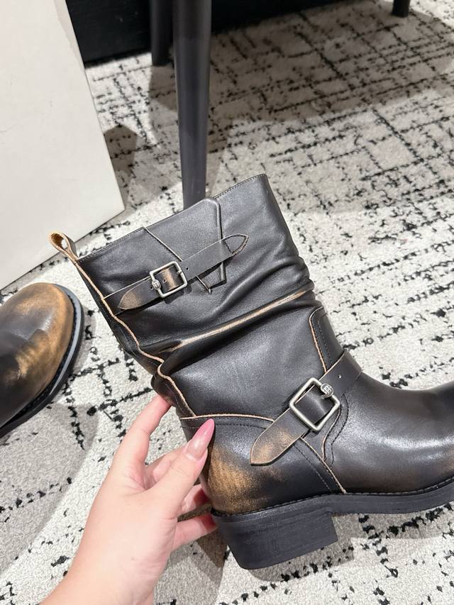 Icedust New Retro Slouch Boots DDD Retro slouch boots with suede and leather patchwork are so textured~ The metal buckle design is cool and casual, and the sleek boot shape easily captures the fashionable look of autumn and winter, guaranteeing you'll turn heads on the street~ DDD Upper: Imported cowhide, suede DDD Lining: Imported cowhide DDD Outsole: Authentic molded outsole DDD Size: 35-39 40.41 Custom made DDD
