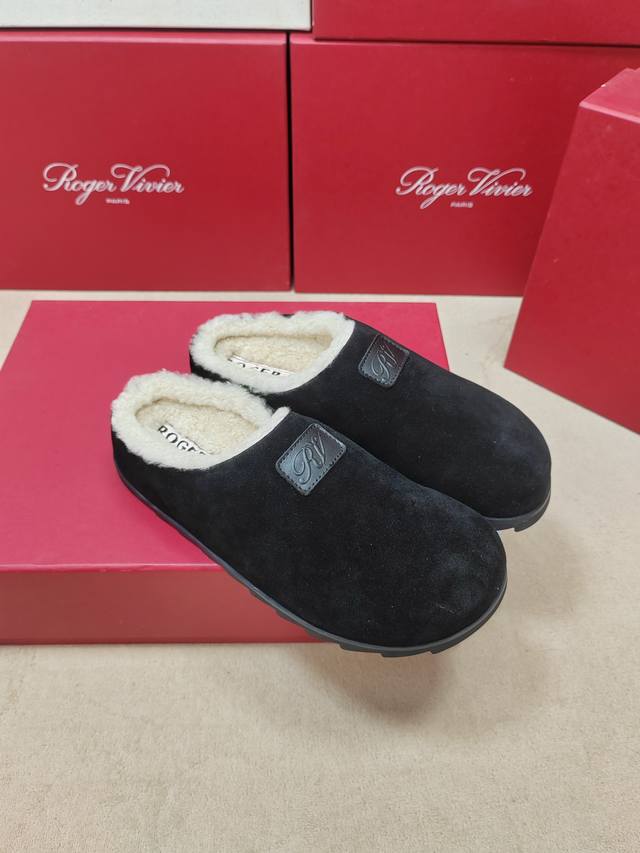 These fluffy, rhinestone-buckled slippers from the Slidy Viv' series are perfect for everyday wear. Handcrafted from soft suede leather with a sheepskin lining, they are warm, sophisticated, and instantly add a touch of casual chic to any look. New Rv fluffy wool slippers are now available!