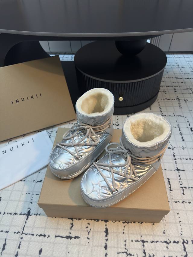 Inuikii The Cold Beauty of Switzerland DDD Inuikii Shearling Anti-slip Height-increasing Snow Boots DDD A Nordic Hot Item, Instagram Bloggers Go Crazy Showing Off DDD The entire shoe is made of imported cowhide DDD Combined with shearling material DDD Purely handmade shearling women's snow boots DDD Improved warmth and waterproof DDD Suitable for any occasion DDD Ushering in a new era of snow boots DDD Youthful, ugly-cute and adorable DDD Classic urban functional boots DDD Flattering foot shape DDD Highly warm and anti-slip outsole DDD Winter styling essential DDD Upper: Shearling five-pointed star embroidery DDD Lining: 100% wool DDD Insole: 100% wool DDD Outsole: Anti-slip and wear-resistant rubber outsole DDD Sizes: 35 40 Size 40 is custom-made, no returns or exchanges DDD