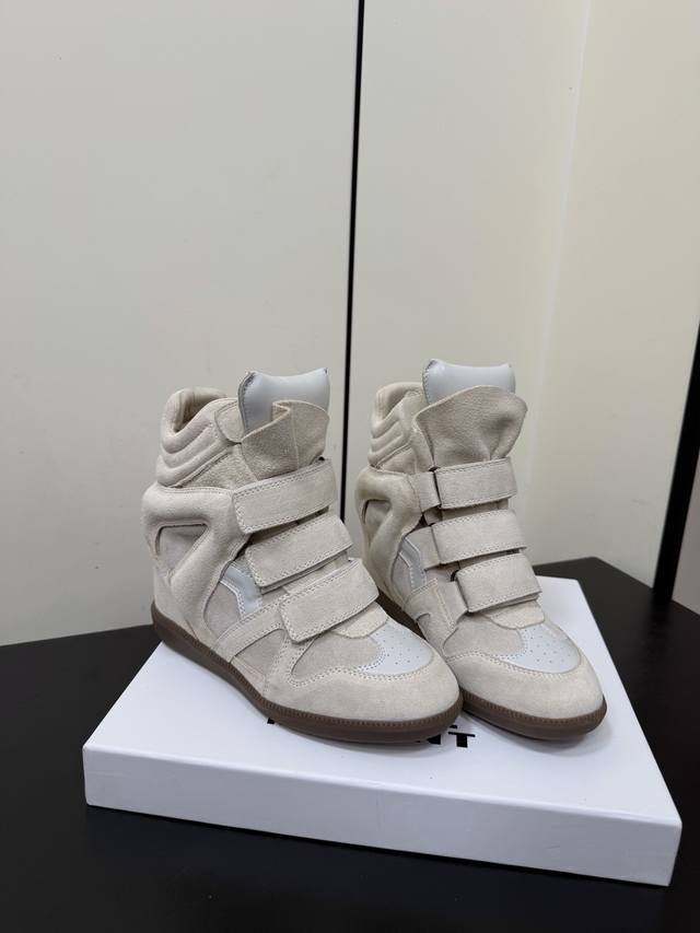 Isabel Marant 2025 Autumn/Winter New Style Hidden Wedge Casual High-Top Shoes DDD A pair of simple yet sophisticated boots, elongating the legs and adding height with a hidden stitched sole! Exceptionally comfortable and versatile! Super suitable for street style photos, easy to wear. Isabel Marant first launched its famous Bekett wedge sneakers in 2011 DDD The upper is made of original imported cow suede, the lining is sheepskin, and the sole is made with original molded rubber DDD Hidden wedge: 6cm DDD Size: 35-40 Size 40 is custom-made and non-refundable DDD