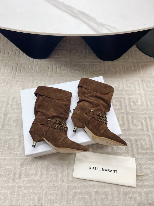 Isabelmarant's new 2025 autumn and winter runway style heeled boots have a lazy French and European style, which is naturally comfortable and free and easy. Fashionistas love it. The imported high-mercerized suede fabric has a water-dyed cow lining and an imported Italian leather outsole. Sizes 35-39# 40# Made to order, no returns or exchanges.