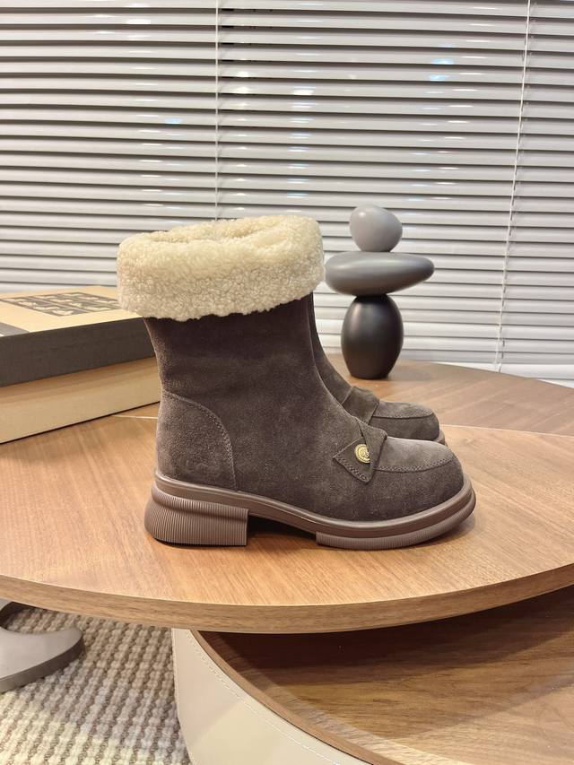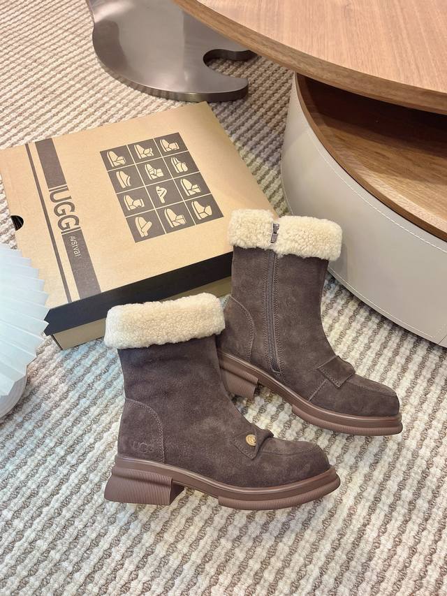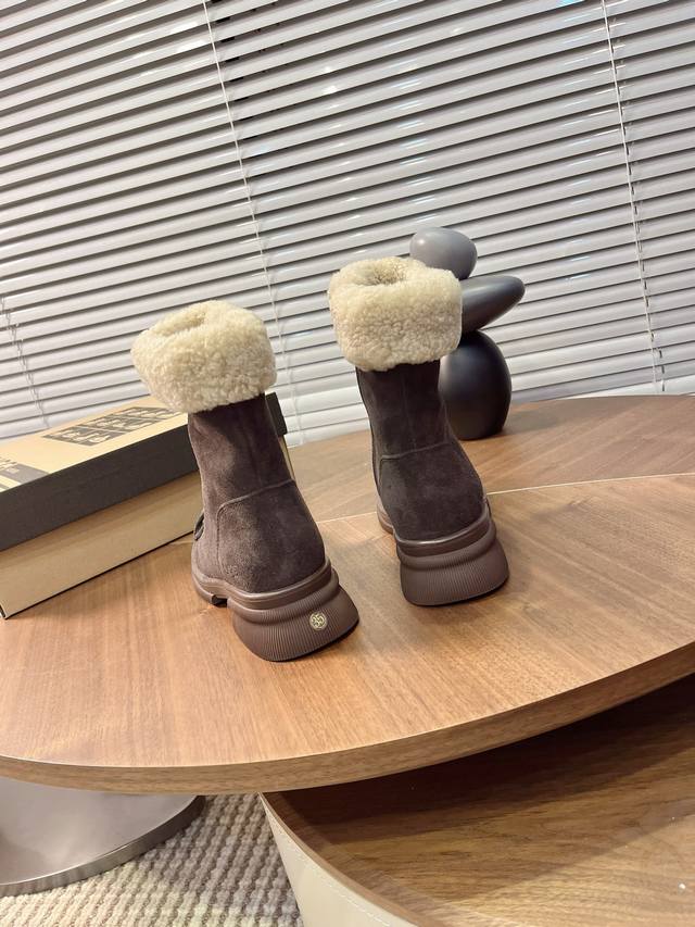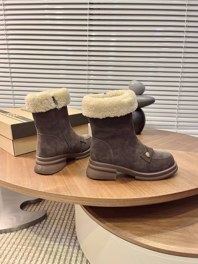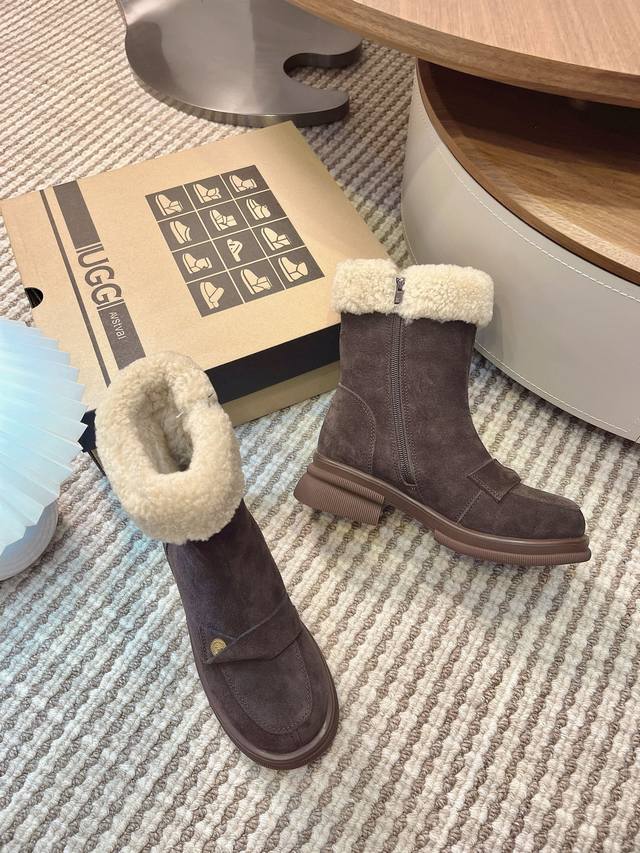 Iugg Gold Coin Curly Boots DDD "These boots perfectly capture the autumn/winter vibe~ DDD The texture of cow suede plus the lamb's wool collar is warm and luxurious, and they look amazing with a tulle skirt or jeans DDD Stepping on a vintage rug feels like wearing the gentleness of autumn on your feet DDD Sizes: 35-40 DDD