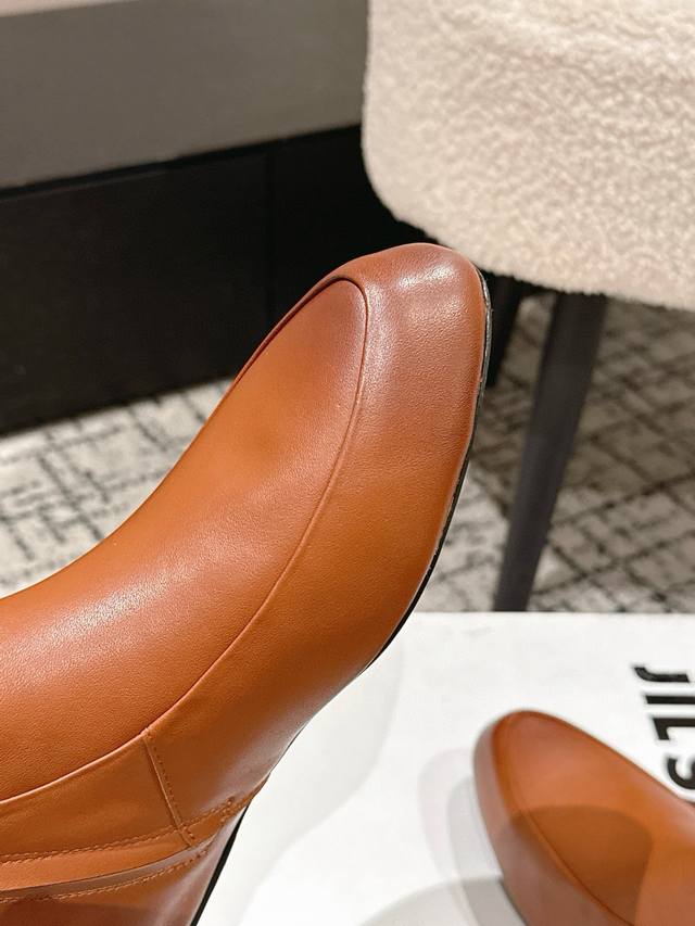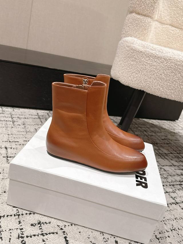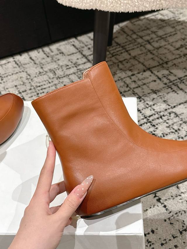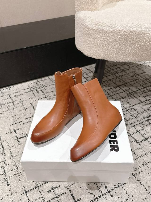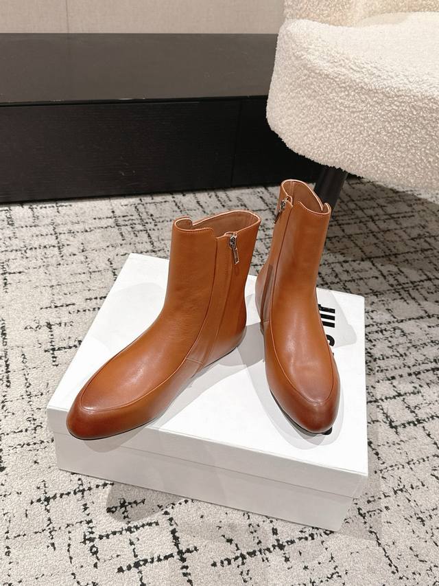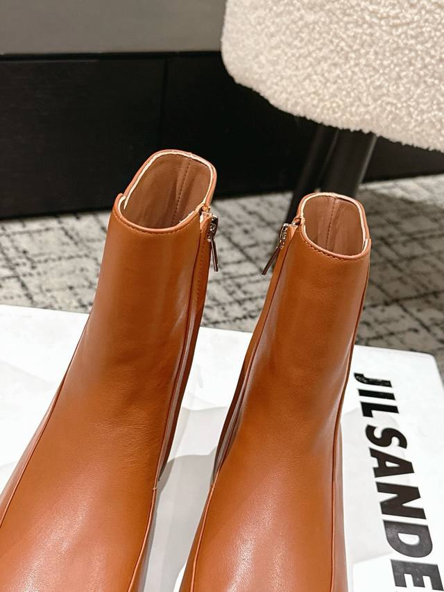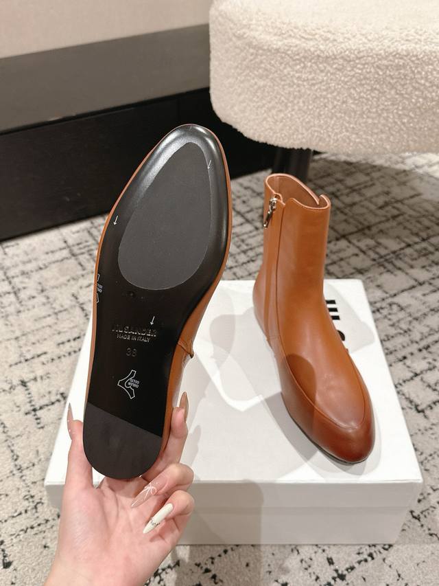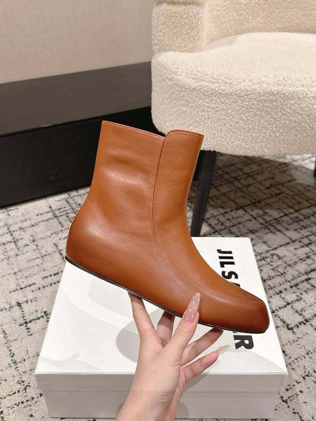Jil Sander 25 Autumn Newest Minimalist Hidden Wedge Ankle Boots with Side Zipper Round Toe Chelsea Granny Boots