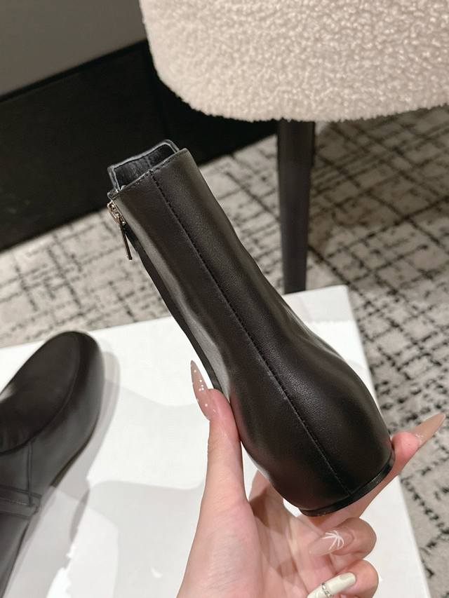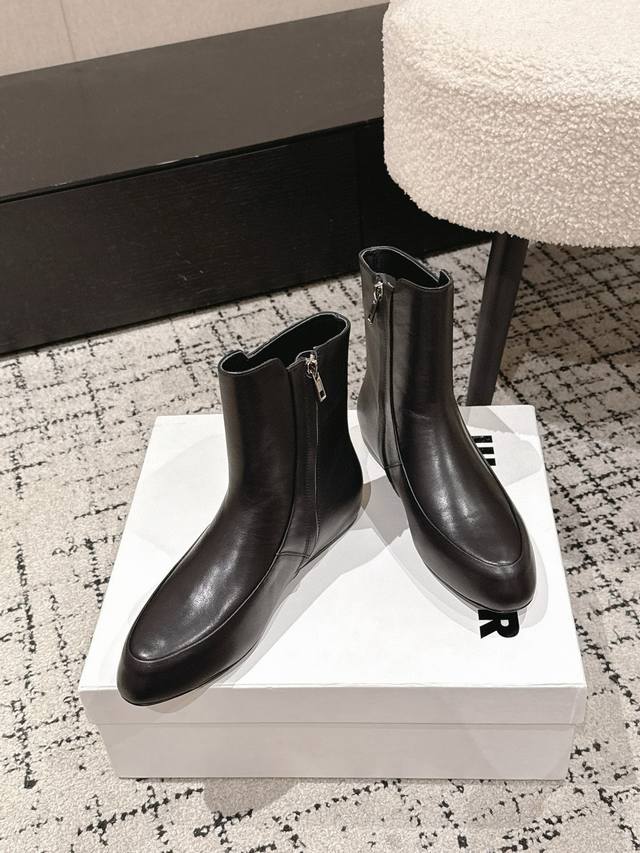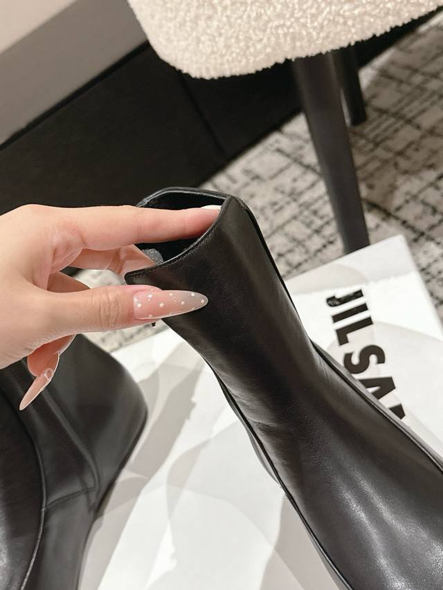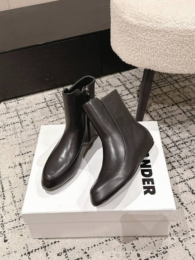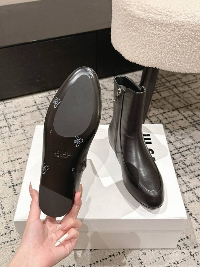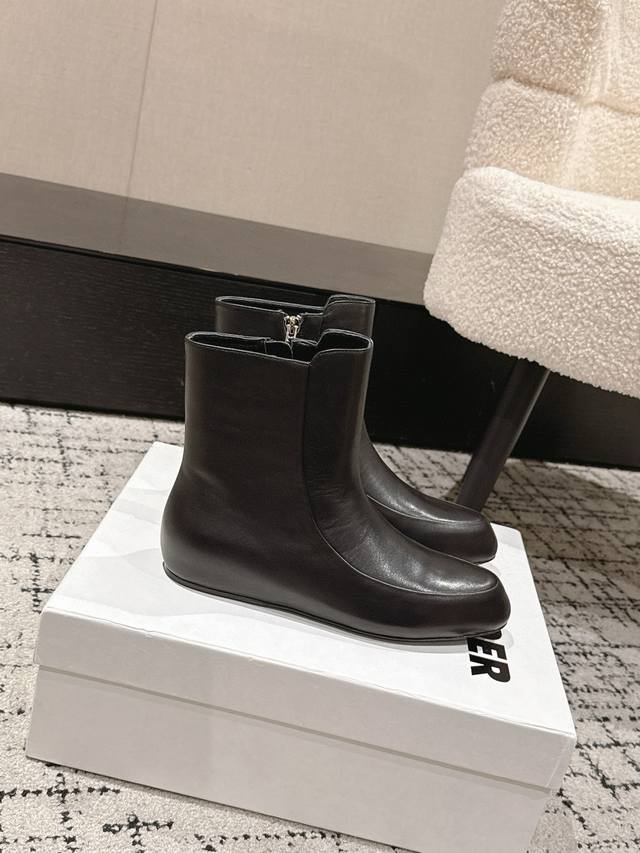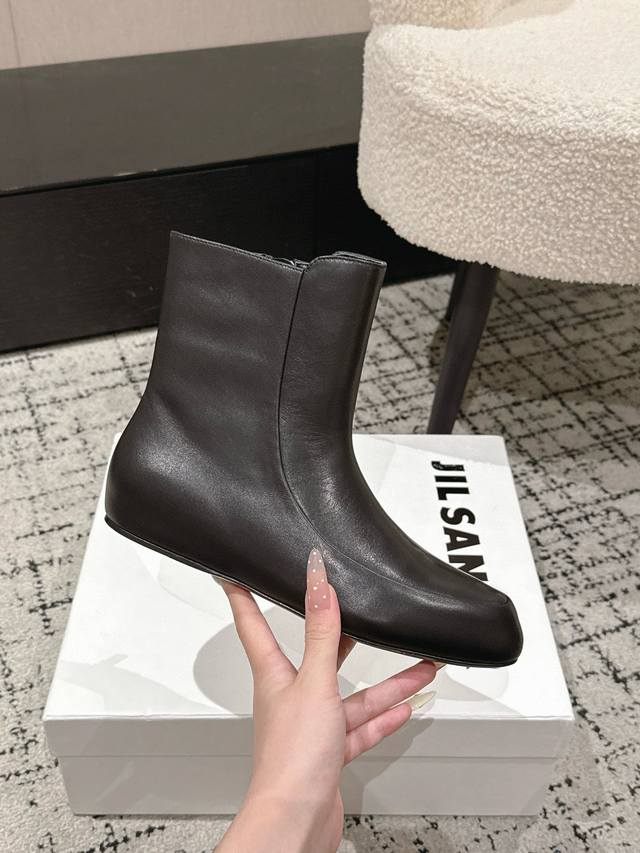 Jil Sander 25 Autumn Newest Minimalist Hidden Wedge Ankle Boots with Side Zipper Round Toe Chelsea Granny Boots
