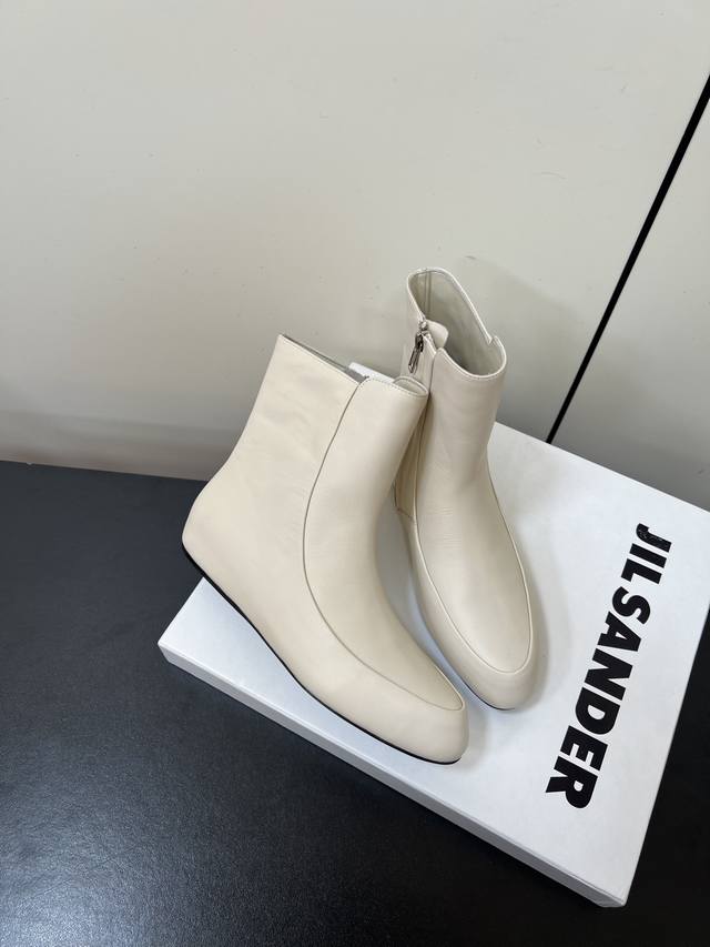 Jilsander 25 Autumn Newest Minimalist Hidden Wedge Ankle Boots with Side Zipper