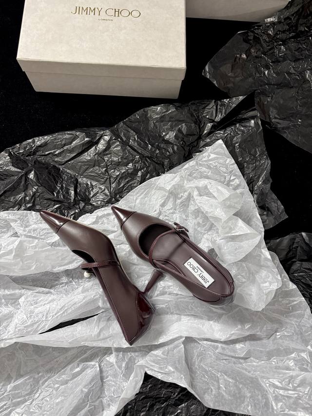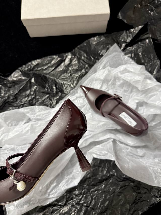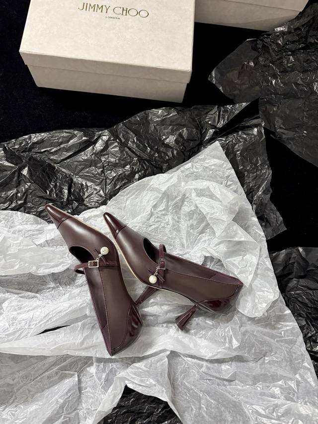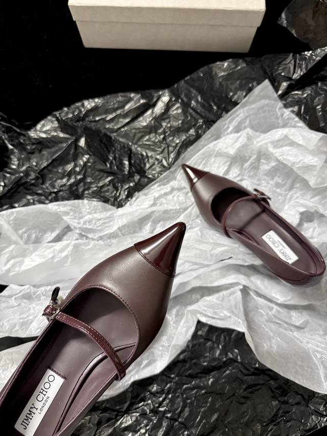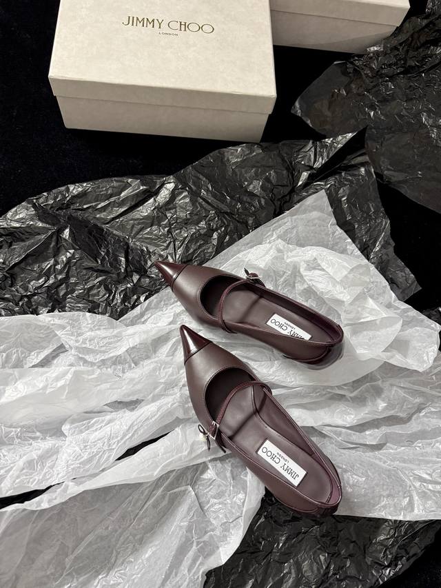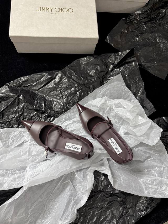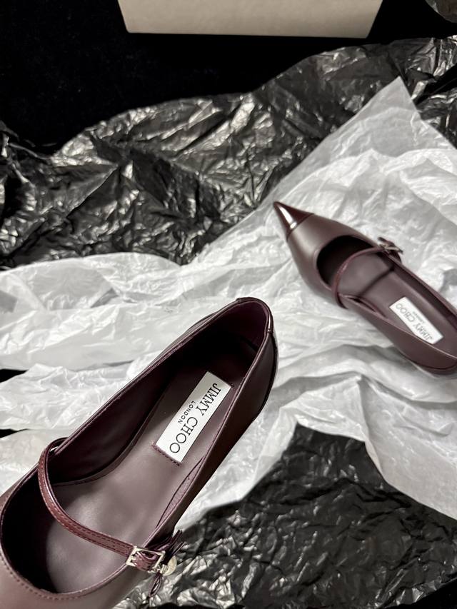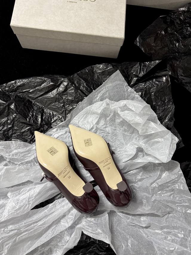Jimmy Cho* New Arrival These single shoes perfectly blend elegance and style. The pointed toe design exudes confidence, while the details add a touch of charm. Whether paired with a dress for a date or trousers for commuting, they effortlessly achieve a sophisticated look, making you the center of attention with every step. Features include: imported cowhide upper, imported sheepskin lining, imported genuine leather outsole, 6.5cm heel height, sizes 35-39, 40, 41, and 42.