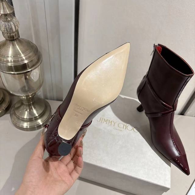 Jimmy Choo 2025 Early Autumn Aren Pum High Heels, made of imported soft lambskin and polished cowhide, offering a soft, delicate texture without sacrificing a sense of luxury. The pointed toe and 6.5cm cone heel provide elegant stability and are comfortable for all-day wear. Perfect for everyday commutes and runway shows! The metal pearl pendant buckle adds a touch of sophistication. Available in burgundy, black, and three other colors, these shoes are perfect for autumn and winter outfits, adding a touch of elegance to dresses and professional trousers. Colors: Burgundy, Black Upper: Imported soft lacquered lambskin Lining: Lambskin Heel Height: 6.5cm Outsole: Italian genuine leather outsole Sizes: 35-39, 34, 40, 41, 42, 43 (Custom Made) Factory Price
