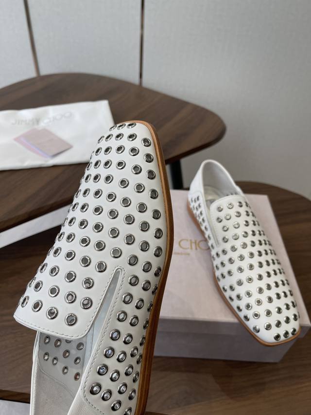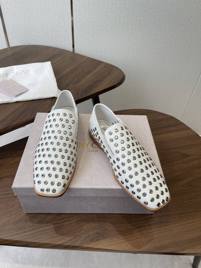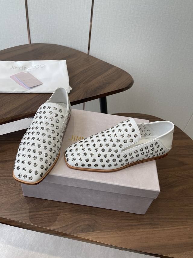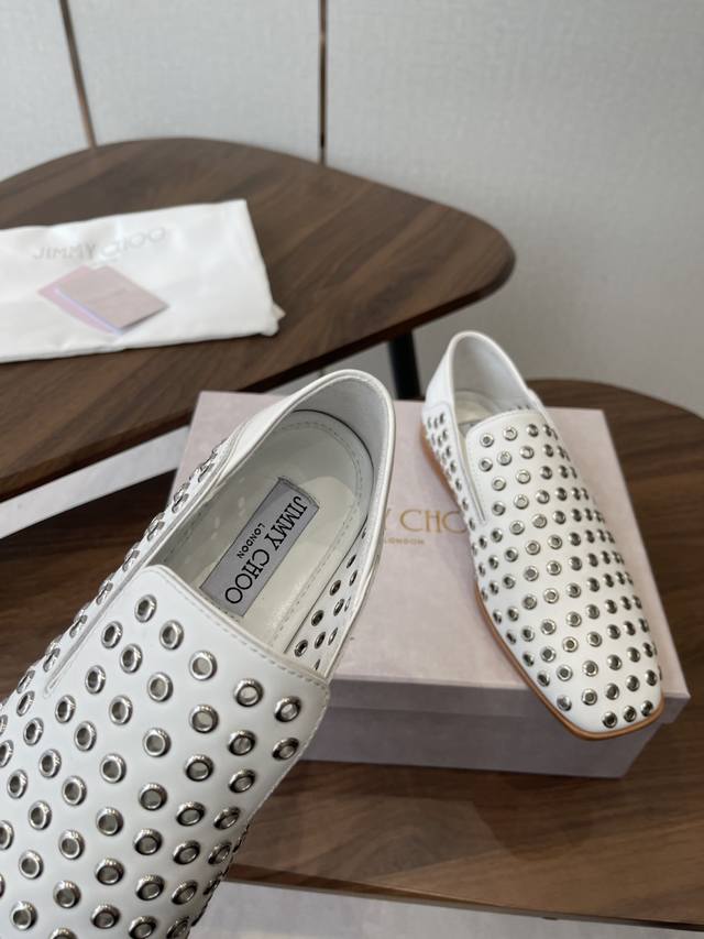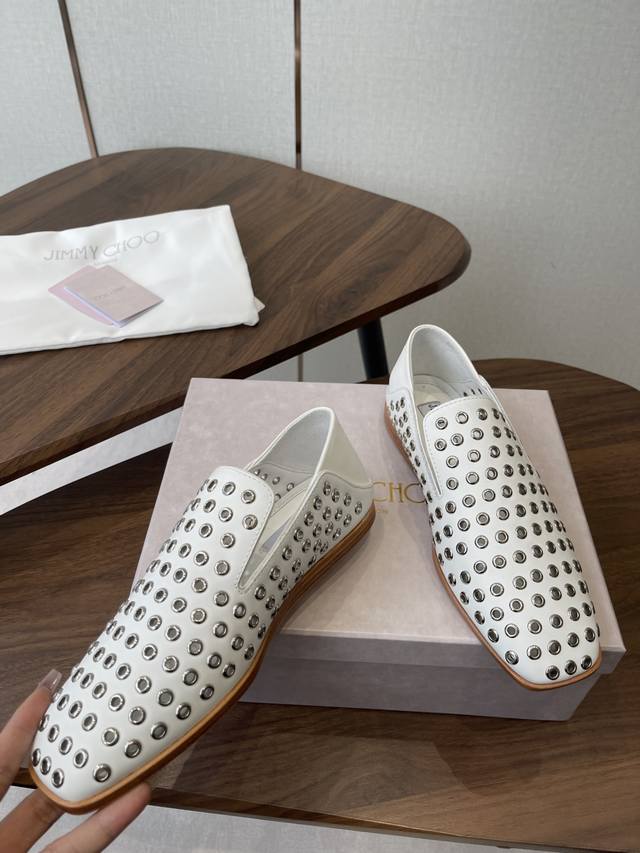 Jimmy Choo 2026 New Flat Chunky Heel Hollow-out Shoes DDD New fashion flat shoes, elegant and stylish design, fashionable and durable, comfortable and fits well, fashion and personality start from your feet, elegant temperament, timeless, enjoy envious glances DDD Upper: Imported top layer calfskin lining, insole: sheepskin outsole: Italian genuine leather outsole accessories: Original custom hardware DDD Size: #35-42 40, 41, 42 are custom-made and non-refundable and non-exchangeable DDD