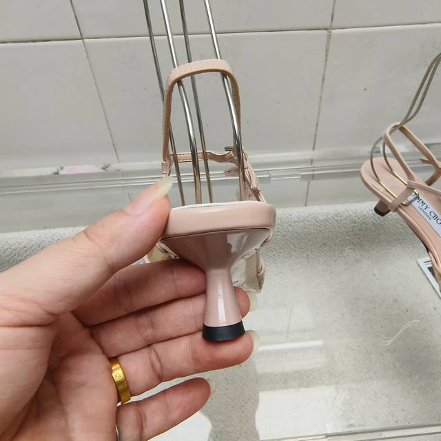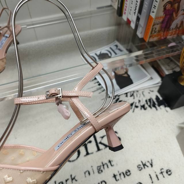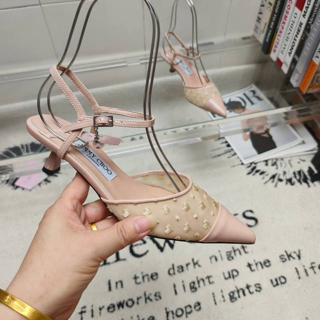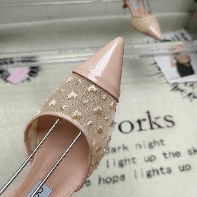 Jimmy Choo Aren Sling Back 45 series slingback shoes, crafted from glossy patent leather and lightweight mesh adorned with heart-shaped details, offer a light, feminine, and sophisticated feel. Delicate pearl embellishments dangling from the ankle strap add a touch of soft, playful style, elevating everyday wear with a touch of luxury or adding a glamorous flair for special occasions. Upper: Patent leather with heart-shaped print mesh Lining: Lambskin Heel Height: 4.5cm Outsole: Italian leather outsole Sizes: 35-39 Custom orders are non-refundable and non-exchangeable.
