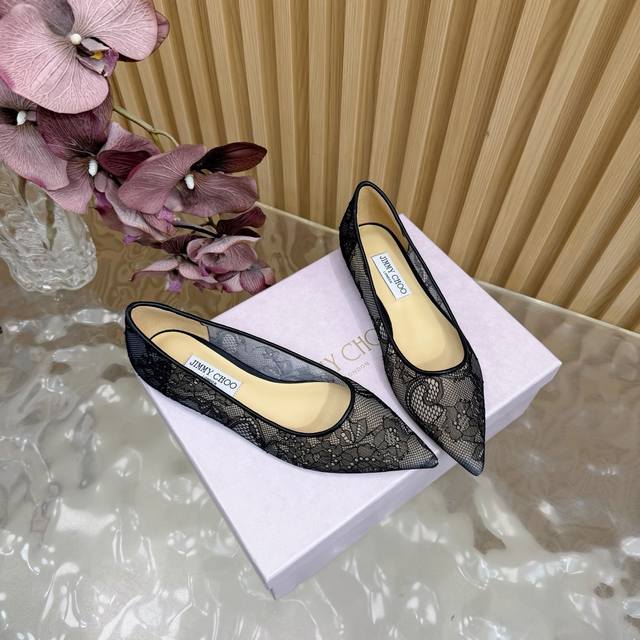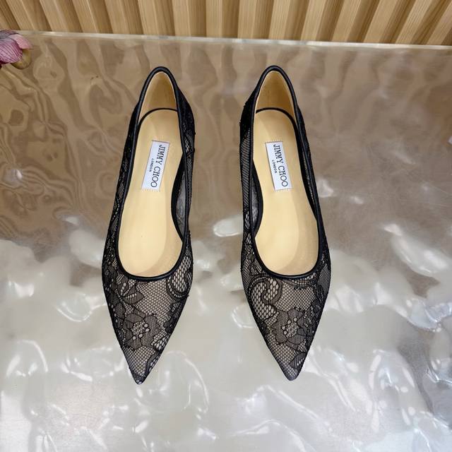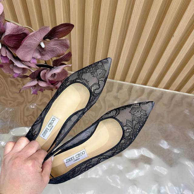 Jimmy Choo classic lace pointed-toe high heels, an absolutely ethereal pair! The lace element is dreamy, romantic, playful, and cute, exuding a sophisticated charm while maintaining a modern and fashionable feel, revealing a touch of elegant allure! JC shoes fulfill every girl's fantasy about high heels , offering both a youthful look and a goddess-like style! The upper features original custom lace, the insole is made of pearlescent sheepskin, and the outsole is made of original Italian genuine leather. Heel height: 6.5cm/8.5cm (flat). Sizes: 35-39, 34, 40, 41 (custom made).