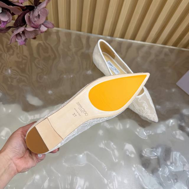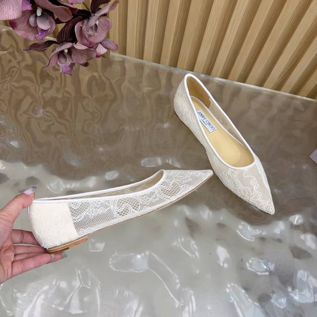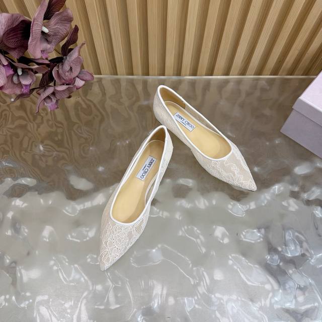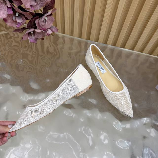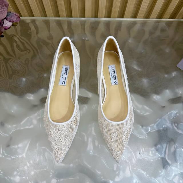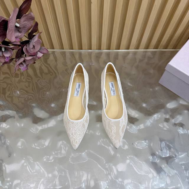 Jimmy Choo classic lace pointed-toe high heels, an absolutely ethereal pair! The lace element is dreamy, romantic, playful, and cute, exuding a sophisticated charm while maintaining a modern and fashionable feel, revealing a touch of elegant allure! JC shoes fulfill every girl's fantasy about high heels, offering both a youthful look and a goddess-like style! The upper features original custom lace, the insole is made of pearlescent sheepskin, and the outsole is made of original Italian genuine leather. Heel height: 6.5cm (flat) / 8.5cm. Sizes: 35-39, 34, 40, 41 (custom made).