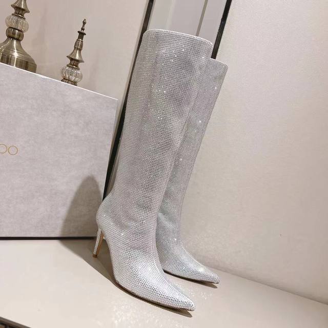 Jimmy Choo Exclusive Release. Exclusive mold design using the latest technology, strong three-dimensional effect, multiple techniques combined to revolutionize fashion, super stylish! A popular item on Xiaohongshu, versatile and trendy, both edgy and sweet! The upper uses imported rhinestones pressed into the shoe by machine, making them less likely to fall off. A high-end custom design, a rhinestone boot, celebrity style. The on-foot effect is really super good-looking, full of fashion sense, a must-have item. Material: Custom imported velvet with hot-stamped rhinestones. Lining: Sheepskin. Colors: Black, Silver, Gold, Red. Sizes: 35-39, 34, 40-42 (Made to order, no returns or exchanges). Outsole: Italian imported genuine leather. Heel height: 8.5cm.